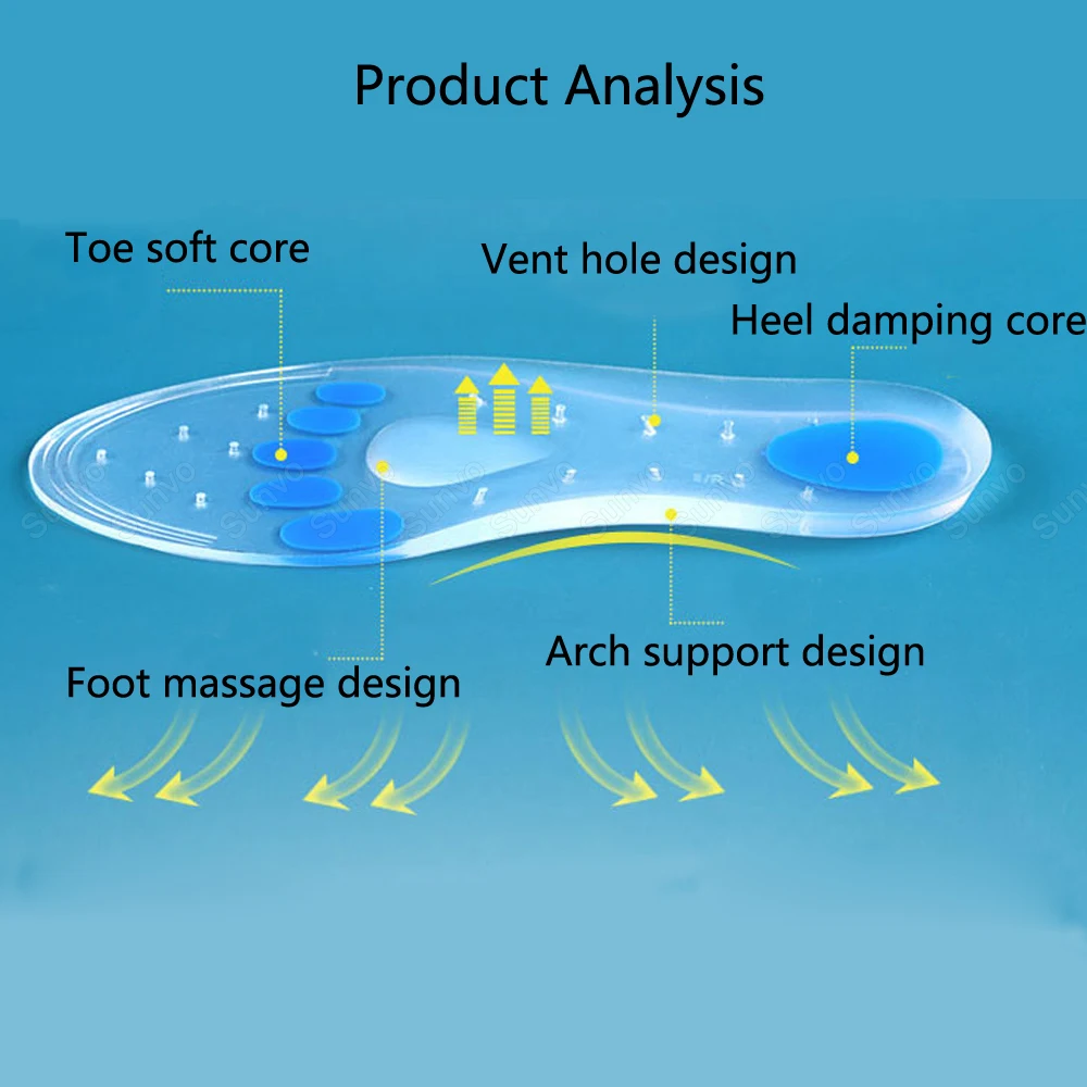 Силиконовые ортопедические стельки для мужчин и женщин, вставки от пота, для подошвенного фасциита, гелевые, с поддержкой свода стопы