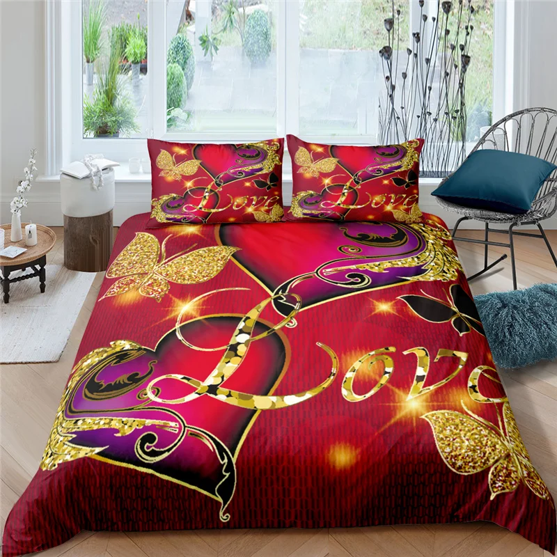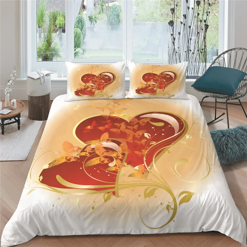 Роскошные комплекты постельного белья для детей-подростков с 3D сердцем и любовным принтом, удобный двойной пододеяльник, наволочка, домашний текстиль, одинарныйКоролевскийбольшой размеры