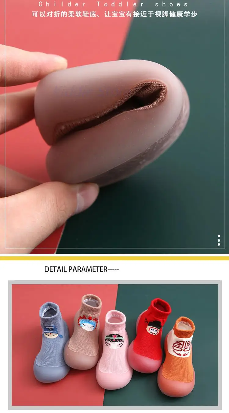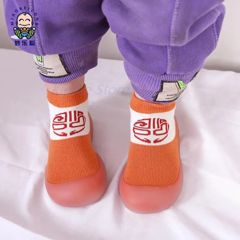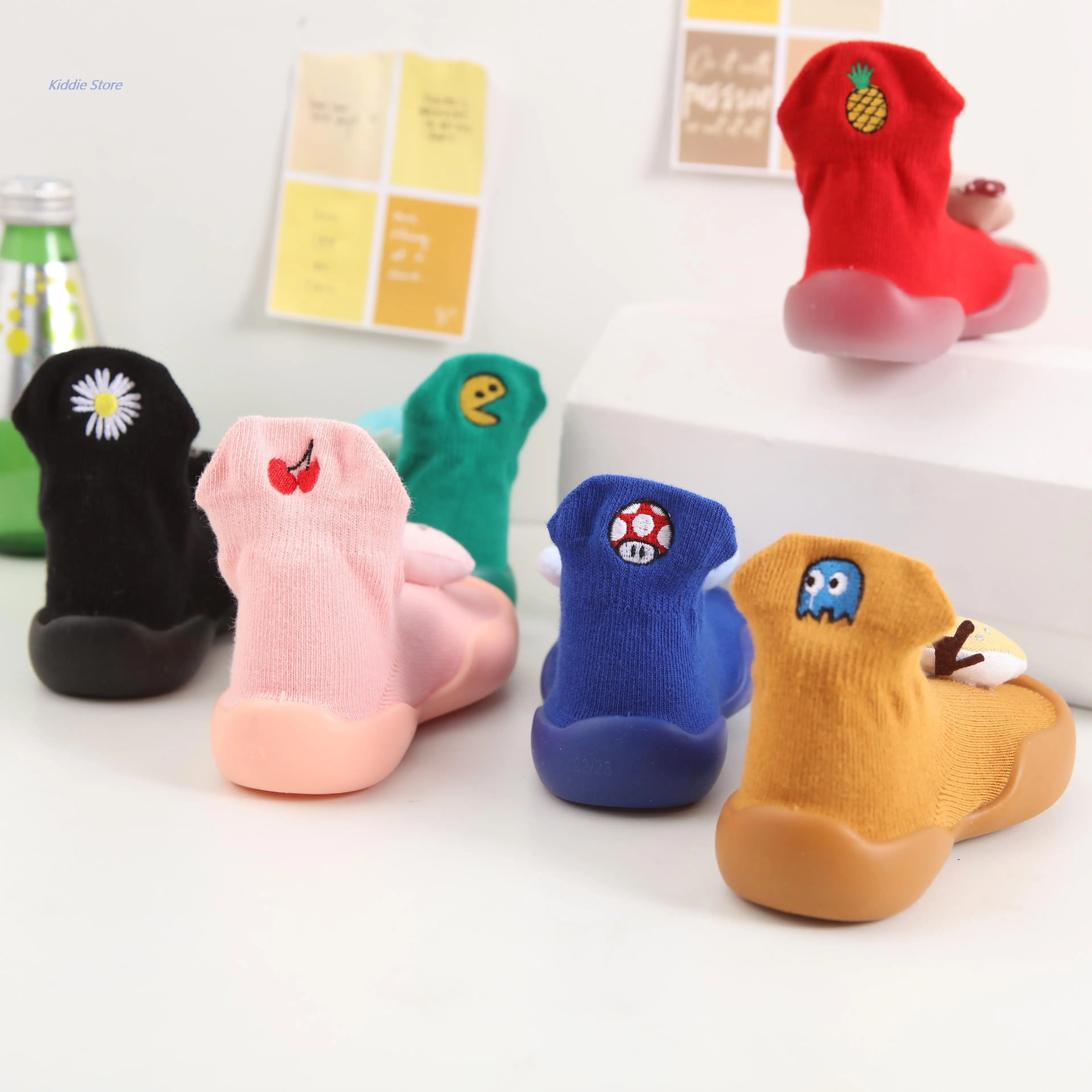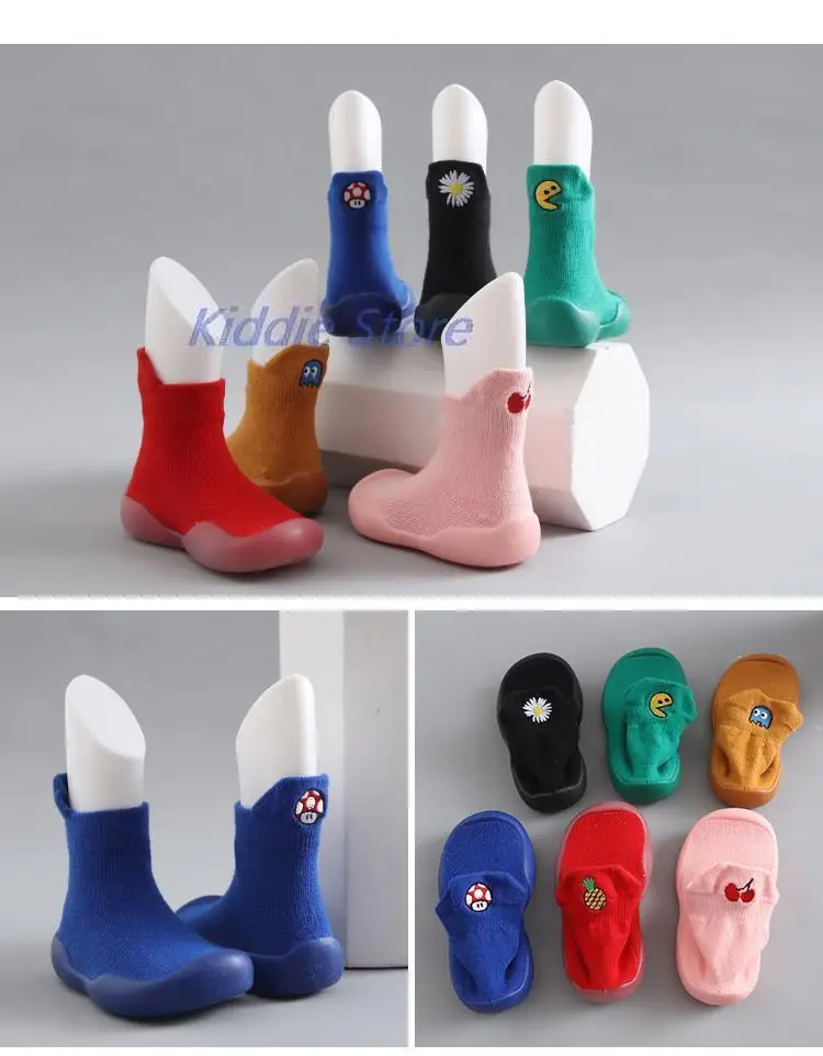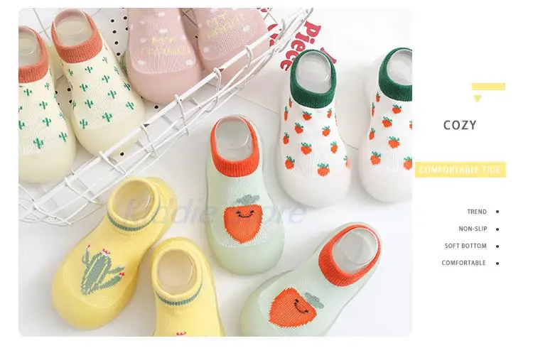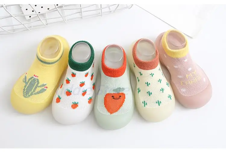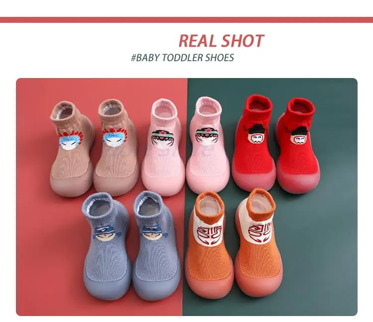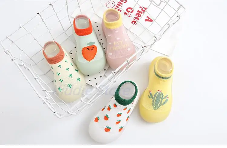 Детские ботинки без пропуска для девочек, домашние носки, обувь с уютной резиновой подошвой для малышей, для мальчиков, Мультяшные вязаные ботинки, тапочки для новорожденных, кроссовки