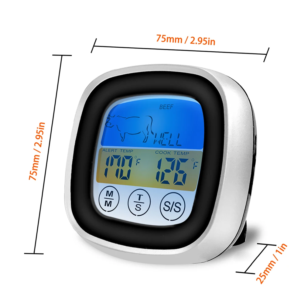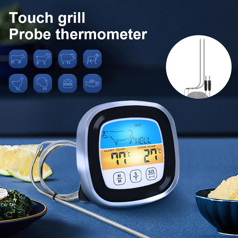 Digital Meat Kitchen Thermometer Touch Screen Stainless Waterproof Probes Oven Cooking BBQ Temperature Meter Alarm Indicator