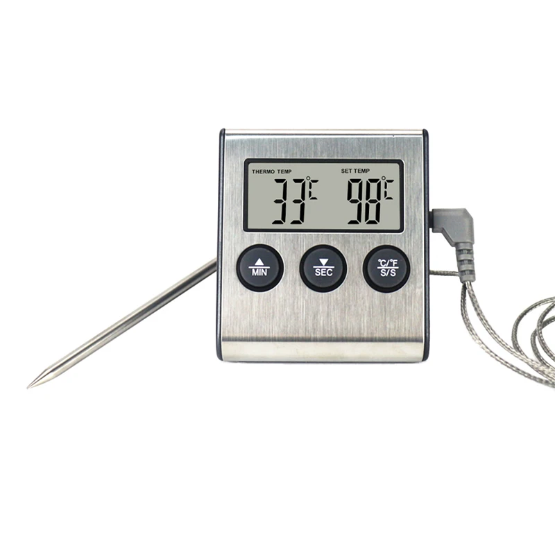 Digital BBQ Cooking Oven Thermometer Meat Kitchen Food Temperature Meter for Grill Timer Function with Stainless Steel Probe