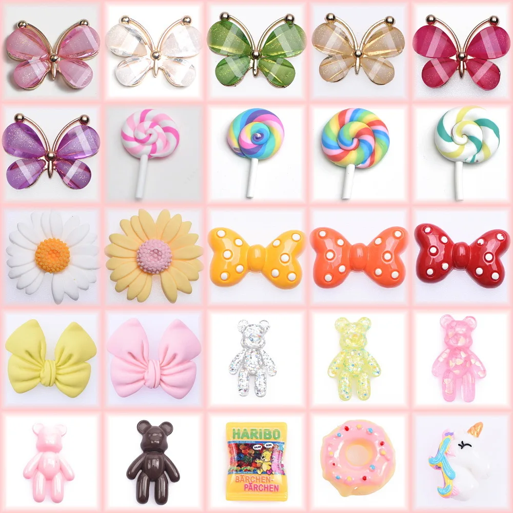 Стразы, подвески в виде бабочек, украшение для обуви из металла, подвески в виде леденцов из смолы для изготовления ювелирных изделий, подвески для цепочек