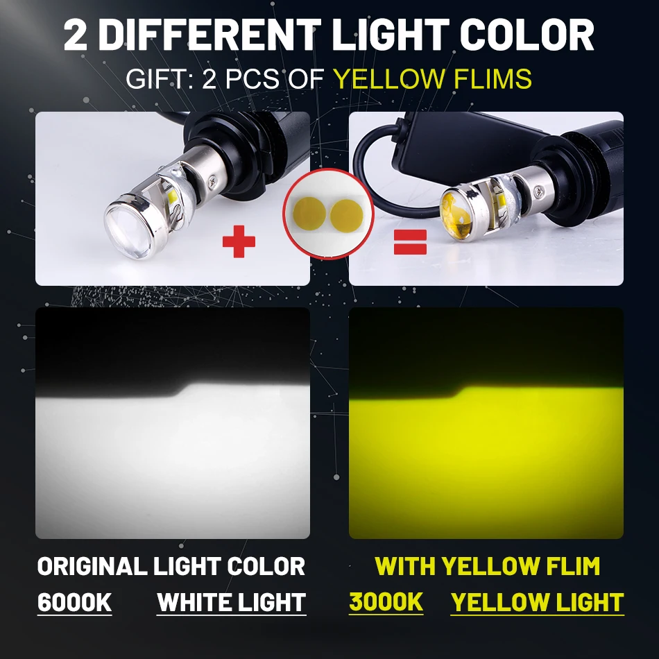 С мини-объективом, идеальный прожекторТип чипа: чипы CSPЦветовая температура: 3000 К-белый цвет, с желтой пленкой цвет может меняться до кЛюмен: лм/параНапряжение: 9-16 В постоянного токаМощность: 30 ± 5 Вт/лампочкаХарактеристика: Внешний привод, вентилятор, линза поршняГарантия: 2 годаСоветы:1. Реальная мощность обычно составляет 80 ~ 90% от теоретической мощности, это нормально.2. Для лампы H7, пожалуйста, проверьте свою машину, если нужен дополнительный кронштейнСодержание посылки:2 лампы с объективом проектора2 шт. желтых флимов