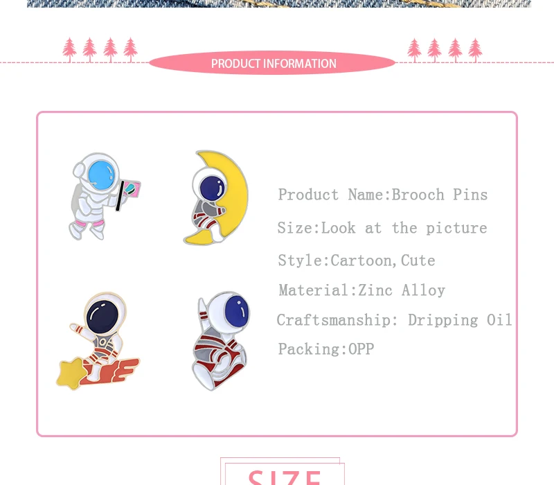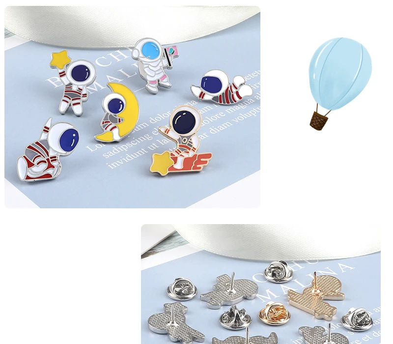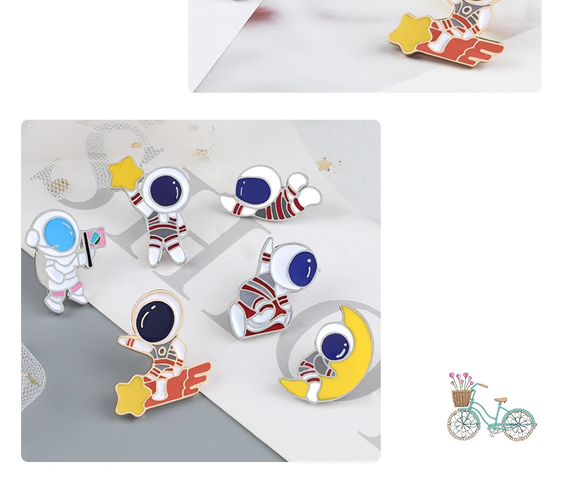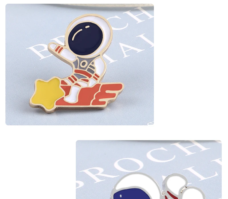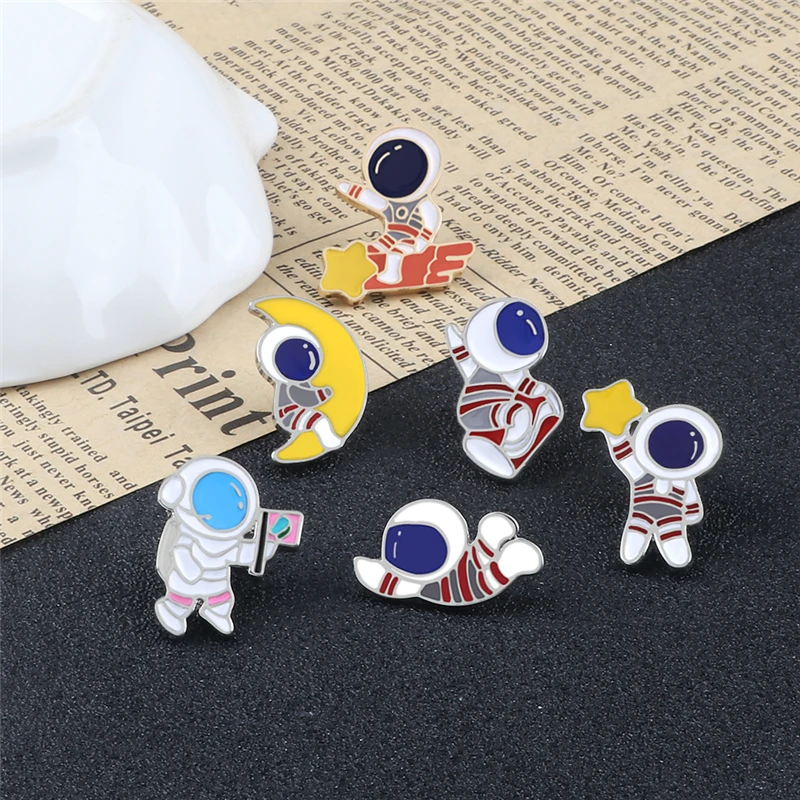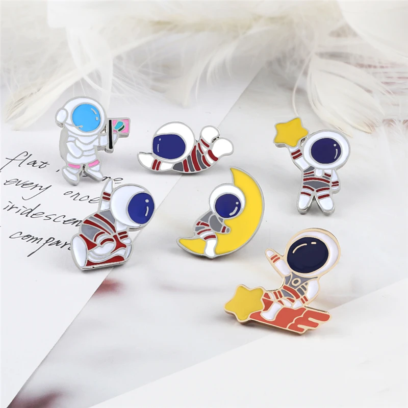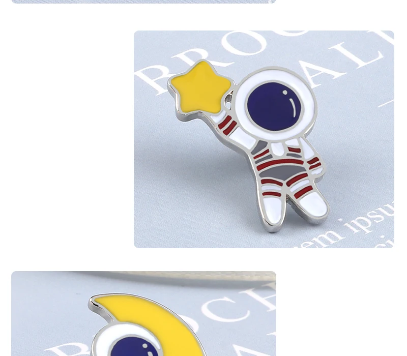 Эмалированная брошь с изображением космонавта, Луны, звезды