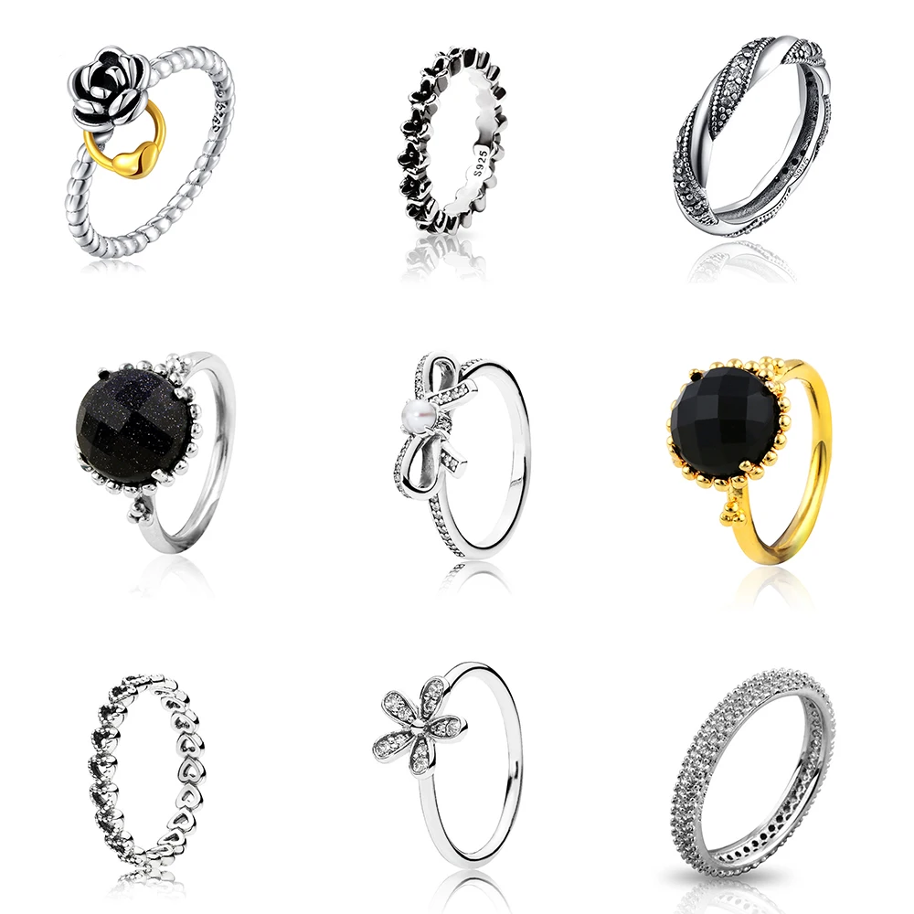 Женское кольцо из серебра 925 пробы, с крупным черным фианитом