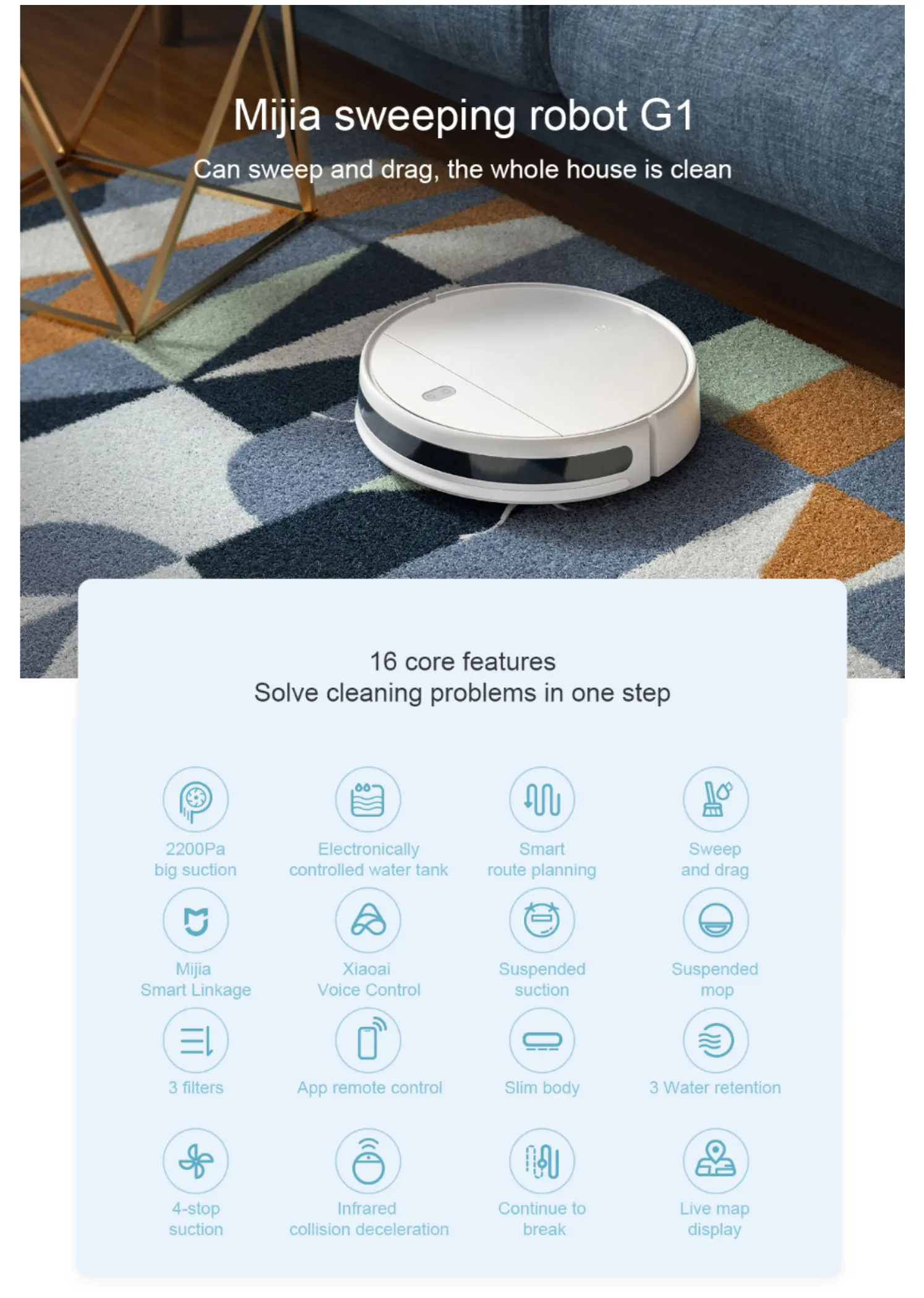 Робот-пылесос Xiaomi Mijia G1, 2200 па, 2 в 1, перезаряжаемый