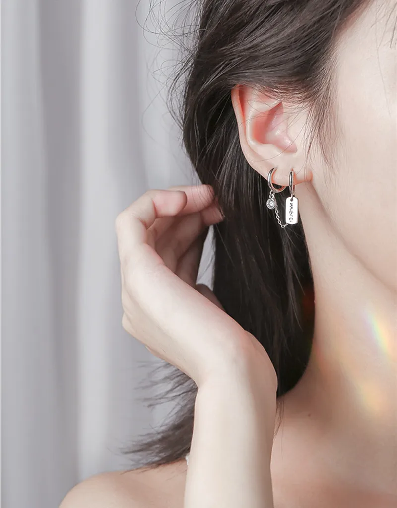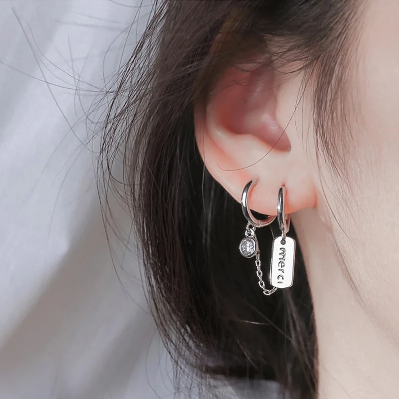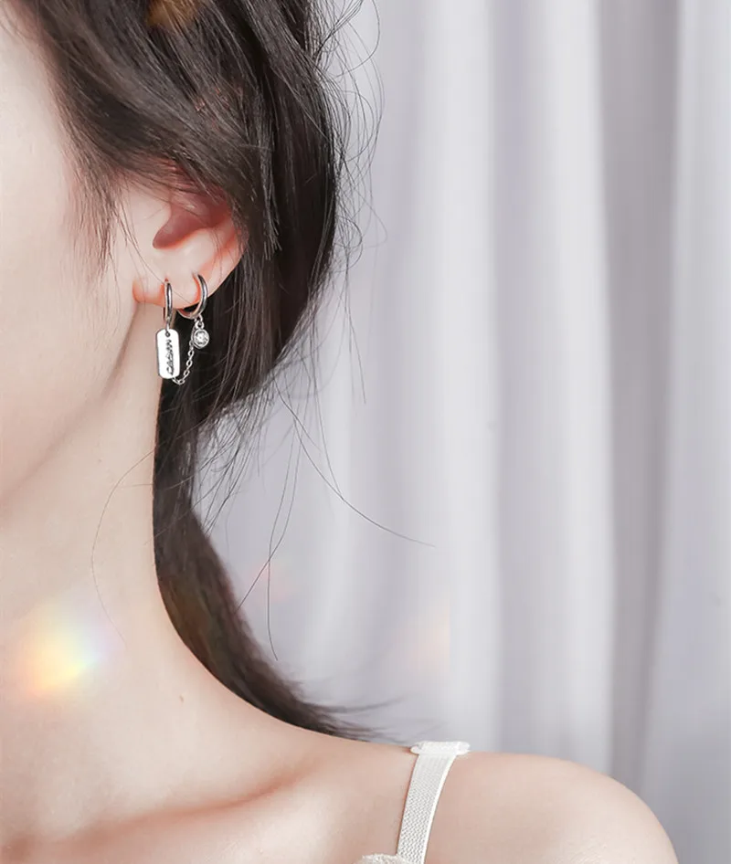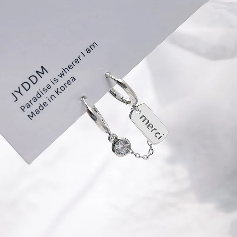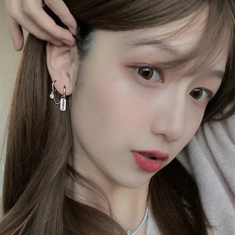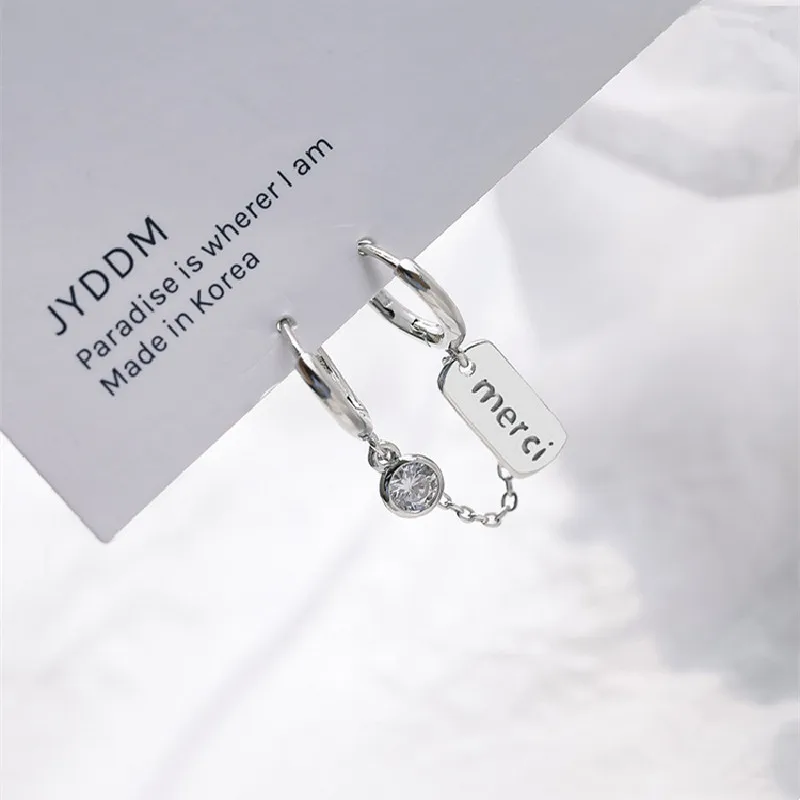 Женские серьги-подвески QMCOCO в стиле панк из серебра 925 пробы с двойными ушками, дырка, круглые, с цирконом, с квадратными буквами, ювелирные изделия