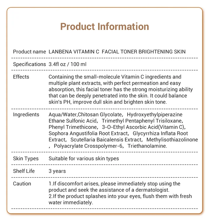 Название продукта: LANBENA Витамин С Тонер для лица Осветляющий кожу