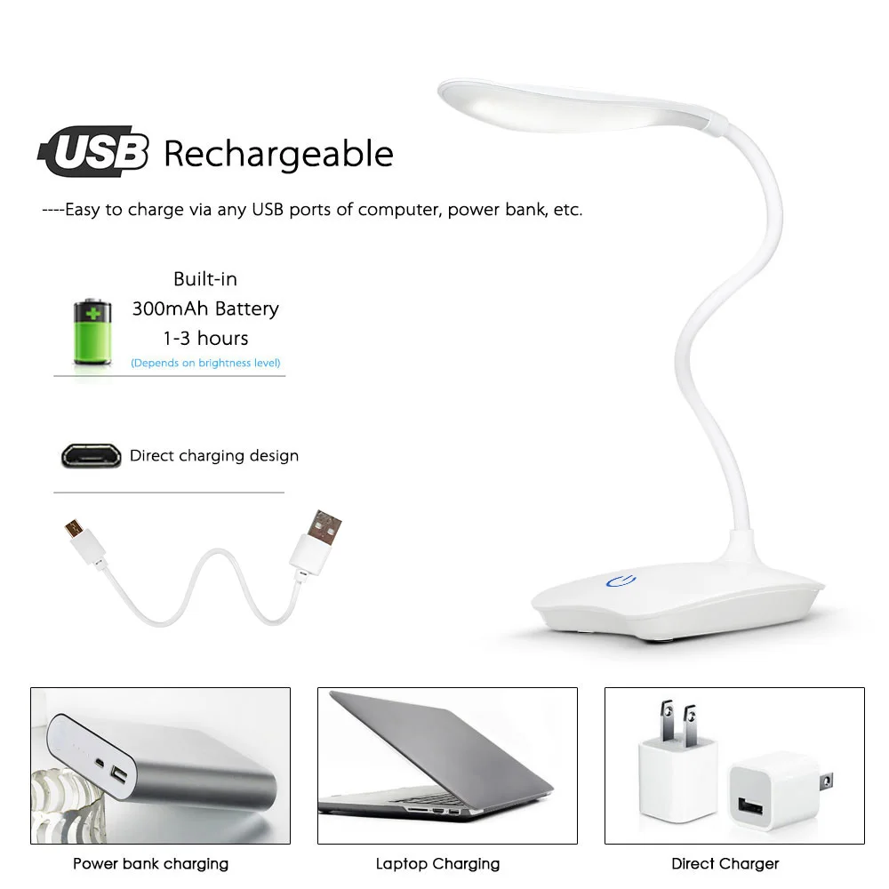 Светодиодная настольная лампа для чтения, с зарядкой от USB