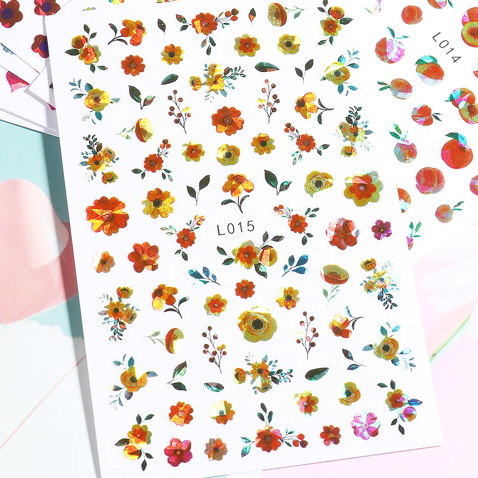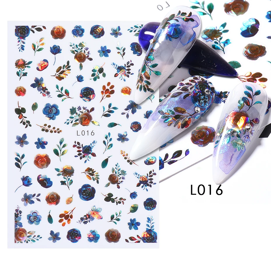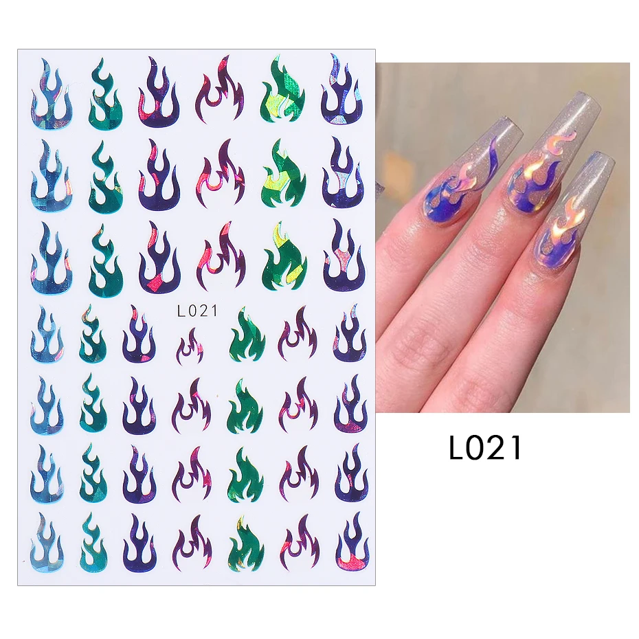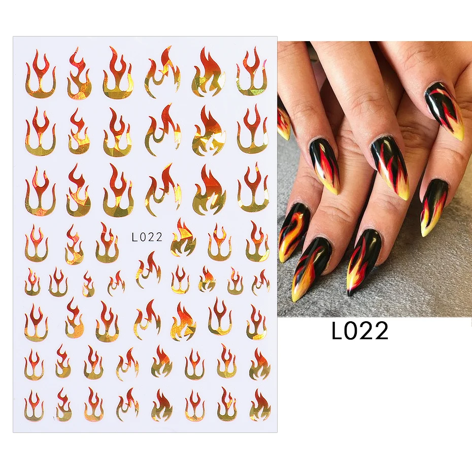 Лазерный голографический слайдер для ногтей Fire Flame Star Гель-лак для ногтей наклейки цветной цветок листья градиент Маникюр BEL022