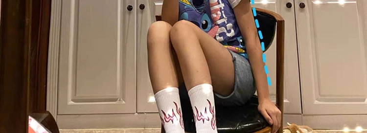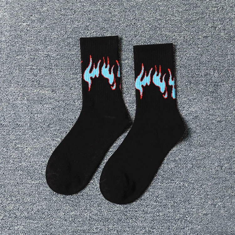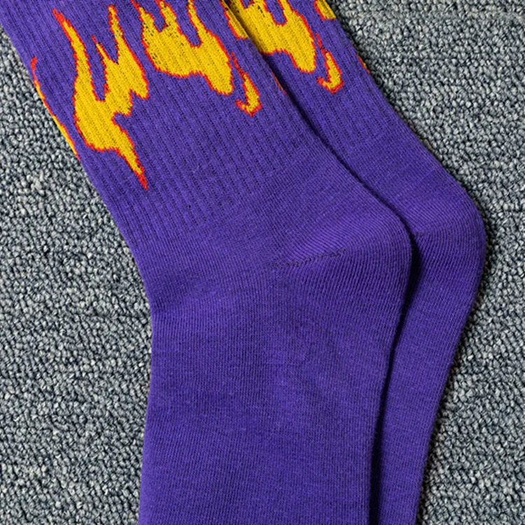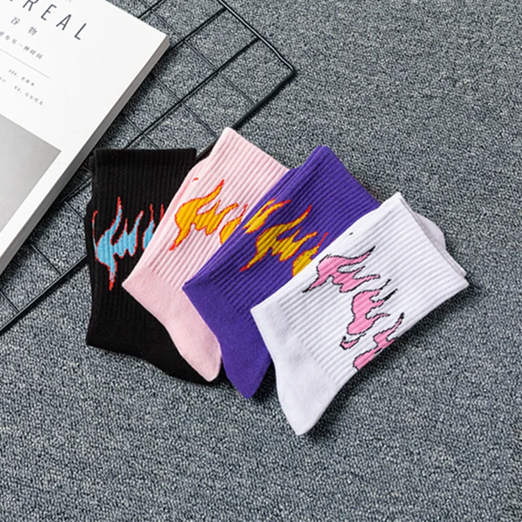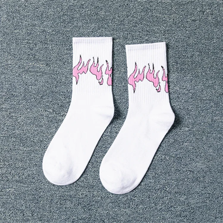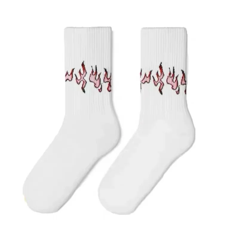 Осенне-зимние новые носки, белые, розовые, фиолетовые, черные хлопковые носки с принтом пламени, уличные трендовые баскетбольные спортивные носки
