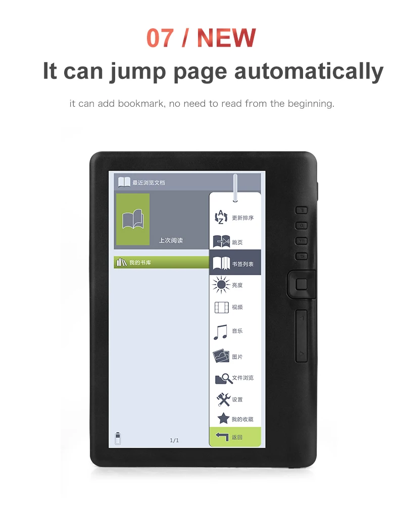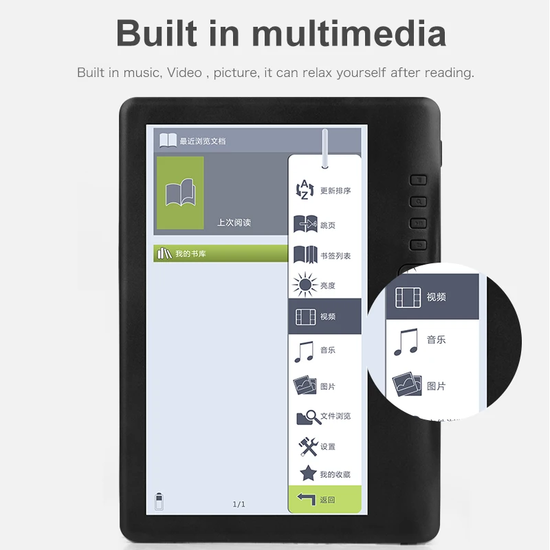 1. 1,7-дюймовый электронный планшет ультра-четкий экран, с sharp текст детали, восстанавливает ощущение бумага для чтения.2. Тонкий и светильник дизайн, 1,1 см, интегрированный корпус установка3. Принятие водонепроницаемого дизайна, сильная защита и более прочный4. Лаконичный дизайн, с независимой кнопкой5. Используя изображения с высоким разрешением и высоким разрешением, вы можете четко видеть главы, изображения и таблицы в предварительный просмотр книги. Быстро находите содержимое для чтения6. Нет отражения под сильным солнечным светом, забота о ваших глазах7. Все шрифты были тонко оптимизированы, чтобы обеспечить максимальный опыт чтения8. Вспомогательная функция чтения, вы можете настроить размер и цвет шрифта, чтобы помочь снять усталость при чтении9. Интимный дизайн, может автоматически поворачивать страницы, добавлять функцию закладки10. Встроенные мультимедийные функции, такие как музыка, видео и фотографии.11. Ядро ARM9, открытая система LINUX, быстрее12. Встроенный аккумулятор используется для длительного чтения13. Массивные книги, 40000 До 50000 книги ресурсов.14. Поддержка нескольких языков: английский, русский, немецкий, французский, испанский, голландский, португальский, польский, швейцарский, венгерский, корейский, японский, греческий и другие 31 языки