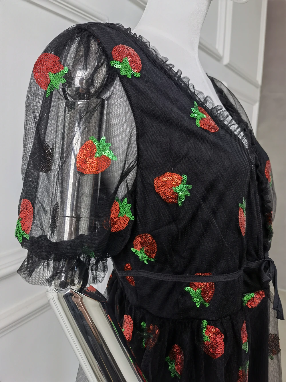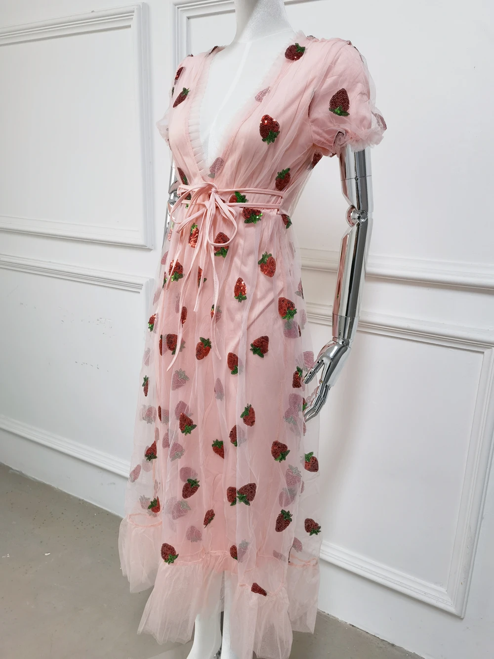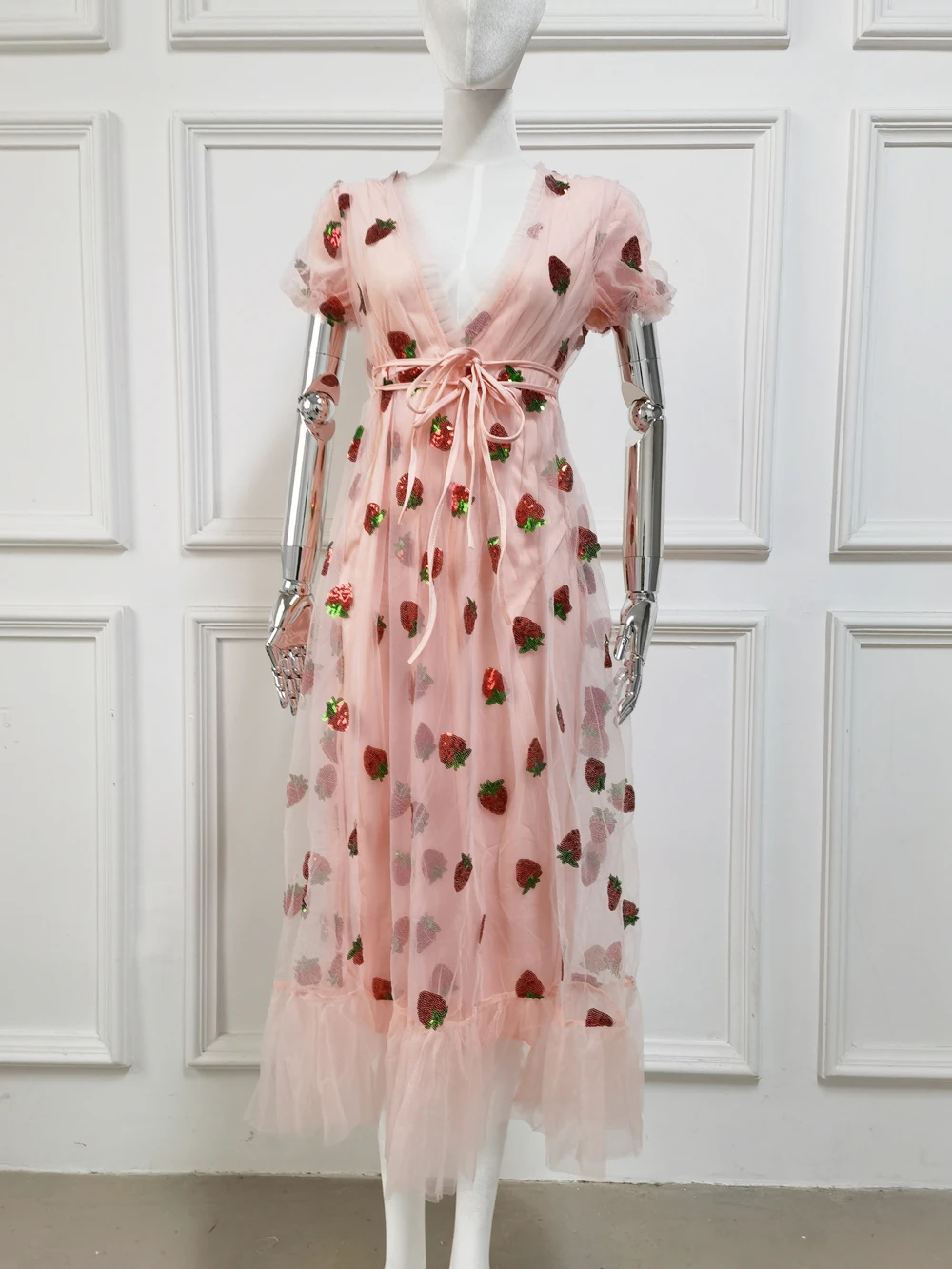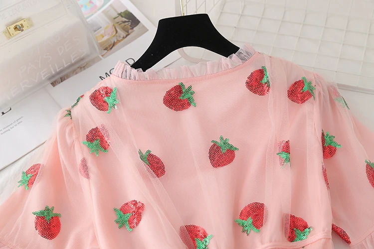 Милое элегантное Сетчатое платье с клубничкой для женщин, лето 2021...