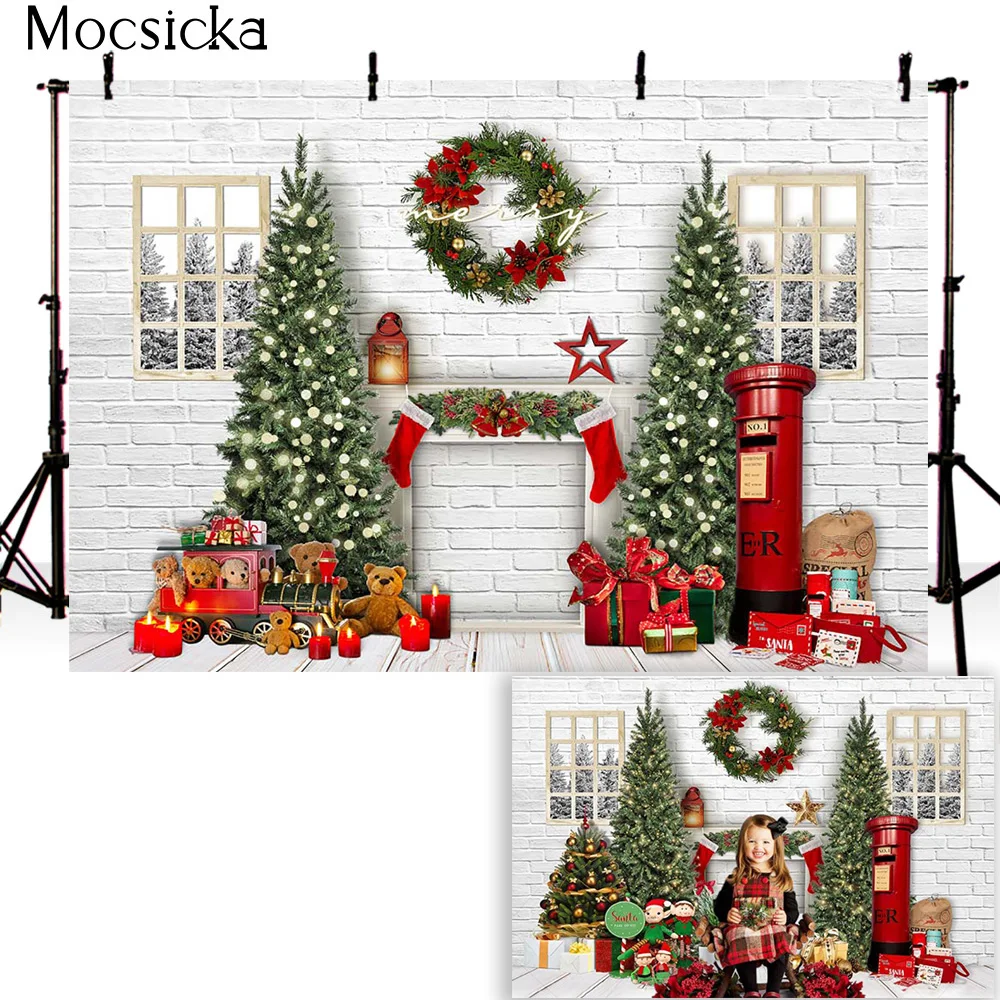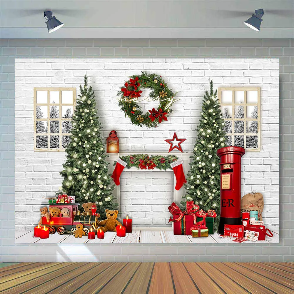 Фон для фотосъемки новорожденных детей с изображением кирпичной стены и игрушек в рождественском стиле