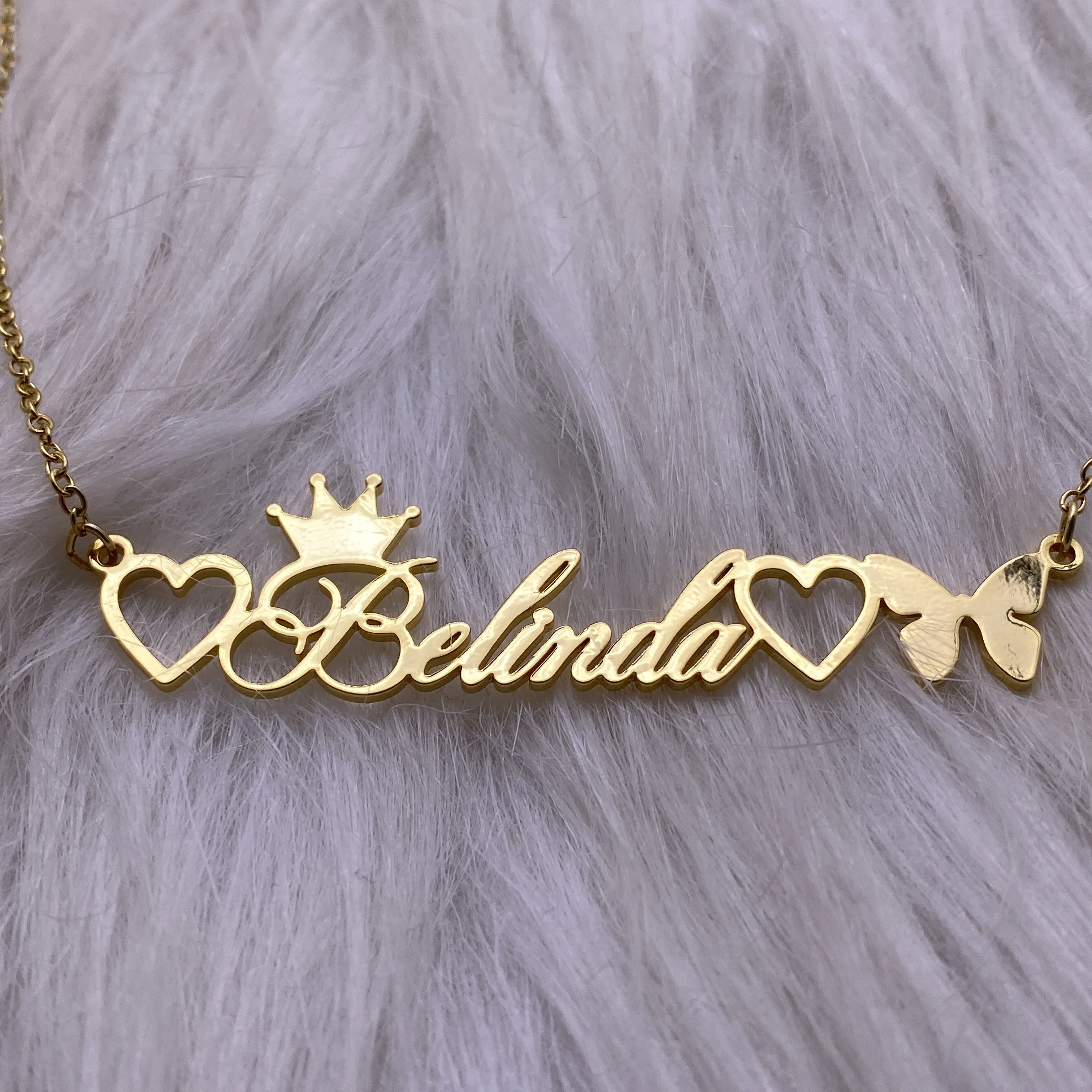 Название продукта:Персонализированное пользовательское имя ожерелье позолоченная цепочка из нержавеющей стали ожерелье сердце бабочка кулон ожерелье для женщин
