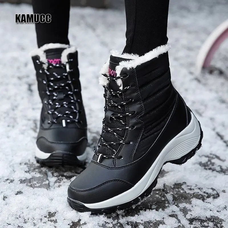 Женские ботинки, водонепроницаемая зимняя обувь, женские зимние ботинки, сохраняющие тепло ботильоны на платформе, зимние ботинки с толстым мехом на каблуке, Botas Mujer 2019