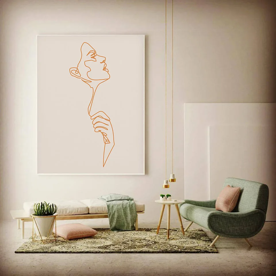 Абстрактная иллюстрация Анри Матисс линия лица коралловый лист холс...
