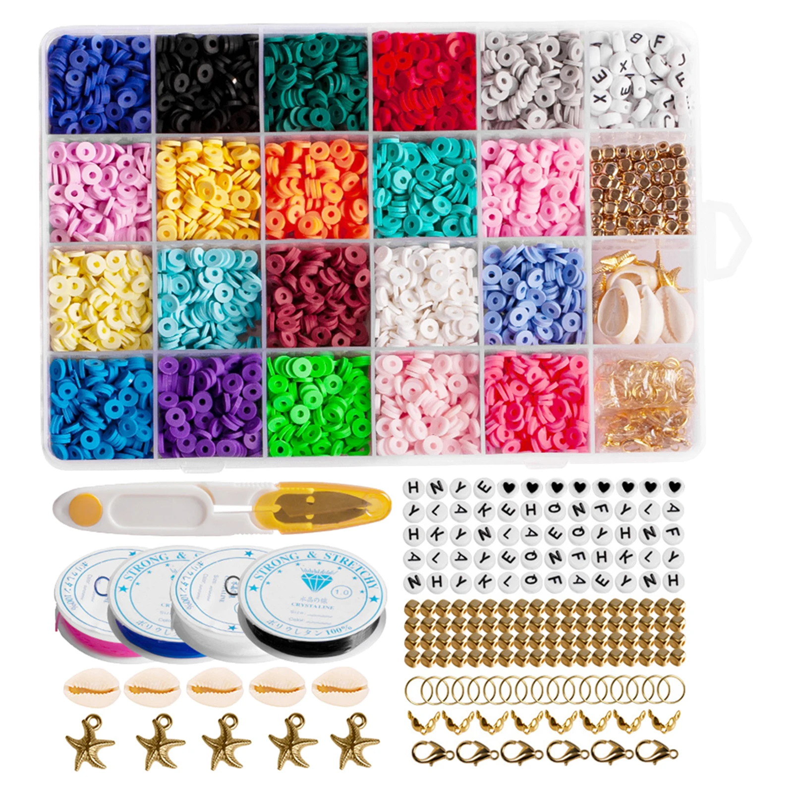 Включает в себя-20 цветов керамических частей, 200 шт каждый, 52 смешанных бусины с буквами, 8 звезд, 100 квадратных бусин, 40 золотых застежек-лобстеров, 20 защелкивающихся колец, 50 Круглых застежек, 5 ракушек, подвески с 5 звездами и 4 рулона эластичной нити (10 м), 1 ножница и 1 ящик для хранения.Широкое использование-идеальный размер для ожерелий, браслетов, сережек, брелоков, ножных браслетов и множества украшений своими руками. Купите некоторые из ваших любимых подвесок и их на свои браслеты.Различные стили «сделай сам»-различные смешанный цвет шарики для изготовления ювелирных изделий помогут вам сделать множество различных типов браслетов или ожерелий. Вы легко сможете сделать красивый браслет.Аккуратная организация-посылка вке есть все необходимое, все аккуратно помещено в коробку. Легкий и веселый набор!Широкое применение-бусины простые, элегантные и привлекательные, подходят для подростков и взрослых, идеально подходят для солнечной весны и лета, повседневного ношения вечерние, серфинга и других случаев.