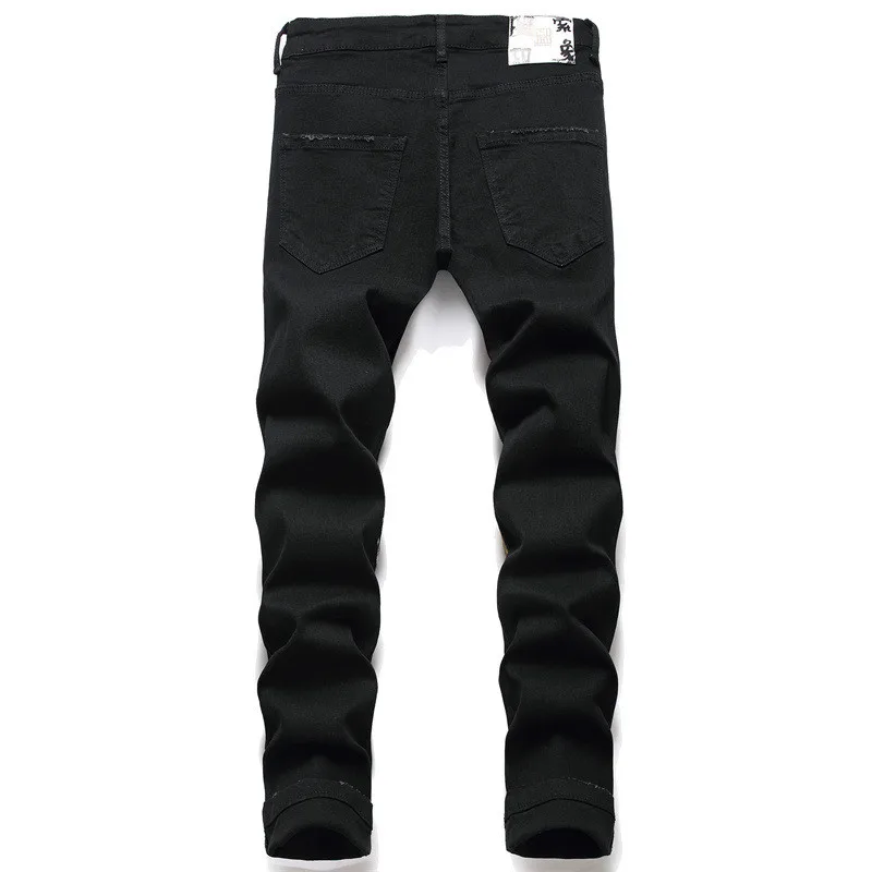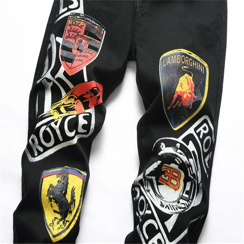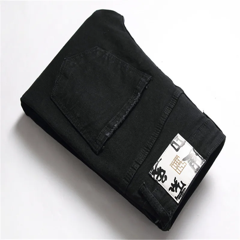 Мужские повседневные Узкие Эластичные черные джинсы с принтом, модн...