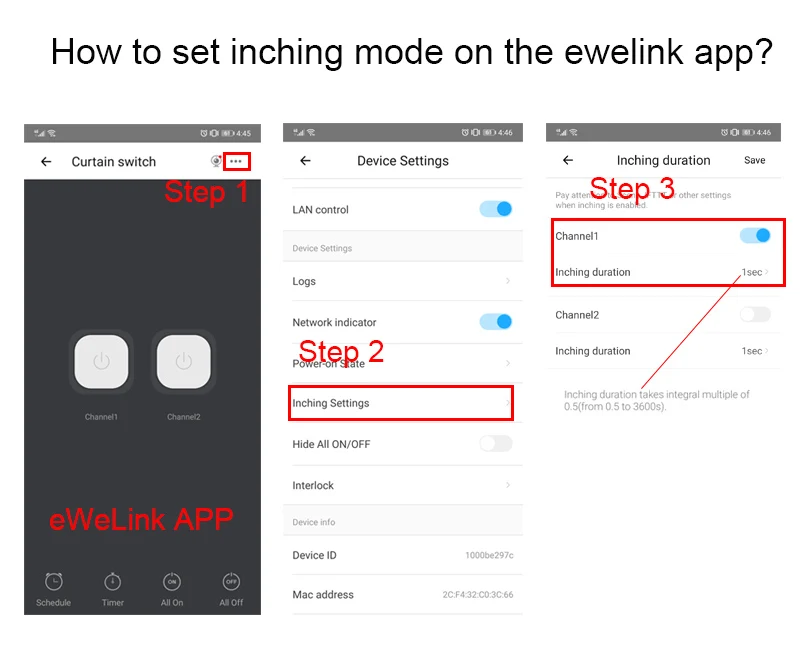 Как настроить режим Inching/Interlock в приложении?