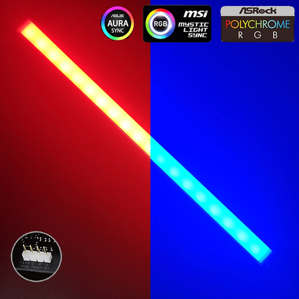 Адресная 5050 цифровая двухсторонняя подсветка 30 см из алюминиевого сплава для ПК, 4 контакта, 12 В, с добавлением разъема, материнская плата RGB для ASUS Aura SYNC
