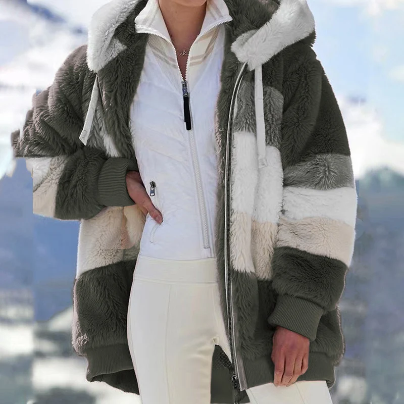 Женская зимняя куртка на молнии, с длинным рукавом и капюшоном