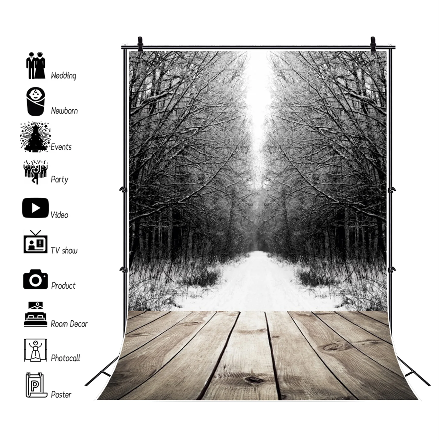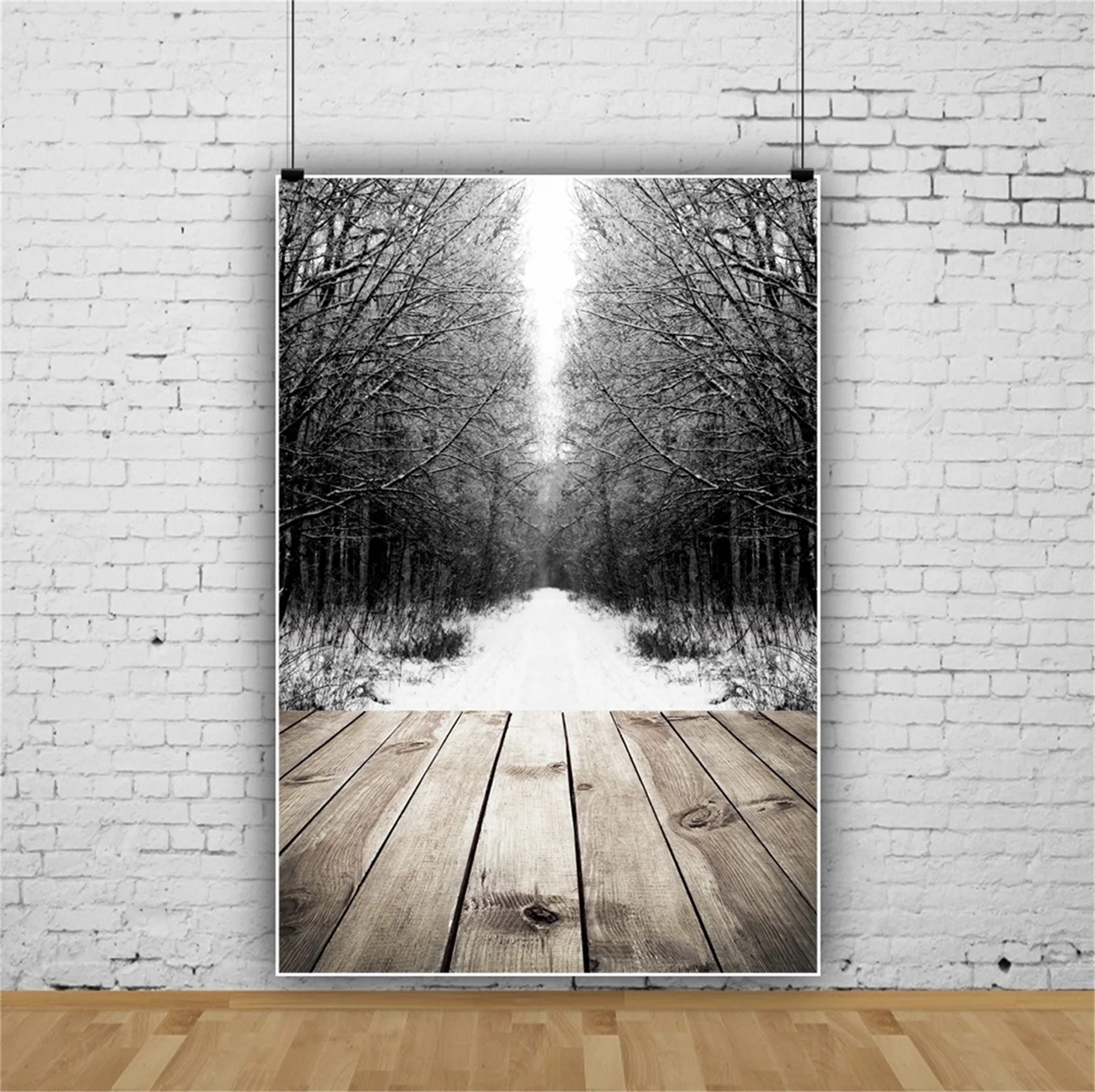Фон для фотосъемки с изображением зимней лесной дороги деревянного пола снега сцены портретной съемки фотосессии фона для фотостудии