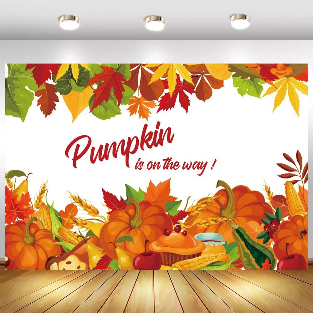 Тыквы кленовые листья Осенняя фотография фон для новорожденных день рождения День благодарения фон бампер сбора фотографий