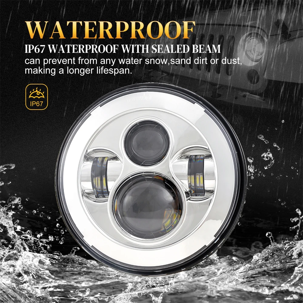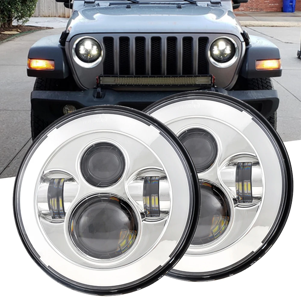 Фара дальнего и ближнего света, 45 Вт, 7 дюймов, круглая, серебристая, светодиодсветодиодный, совместима с Jeep Wrangler JK CJ-7 CJ-8, Лада, нива, УАЗ, Охотник