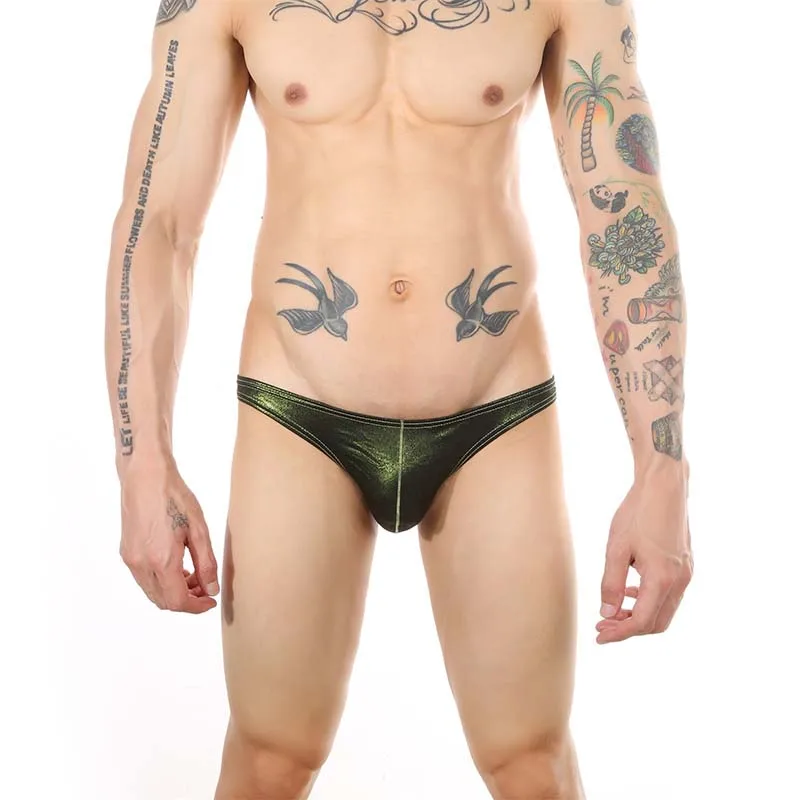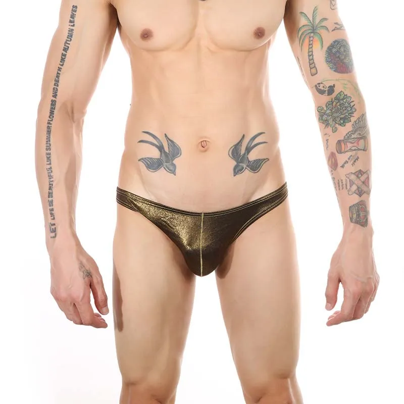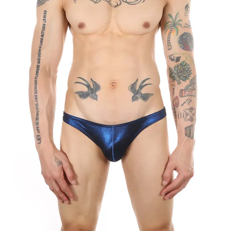 Мужское сексуальное нижнее белье, стринги из искусственной кожи с выпуклым карманом, модные трусики бикини, мужские сексуальные трусы, новинка