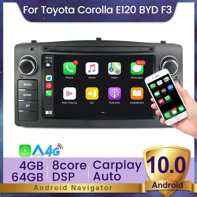 Автомагнитола для Toyota Corolla E120 BYD F3, Android 10, GPS, 4G L...