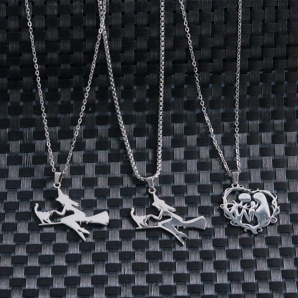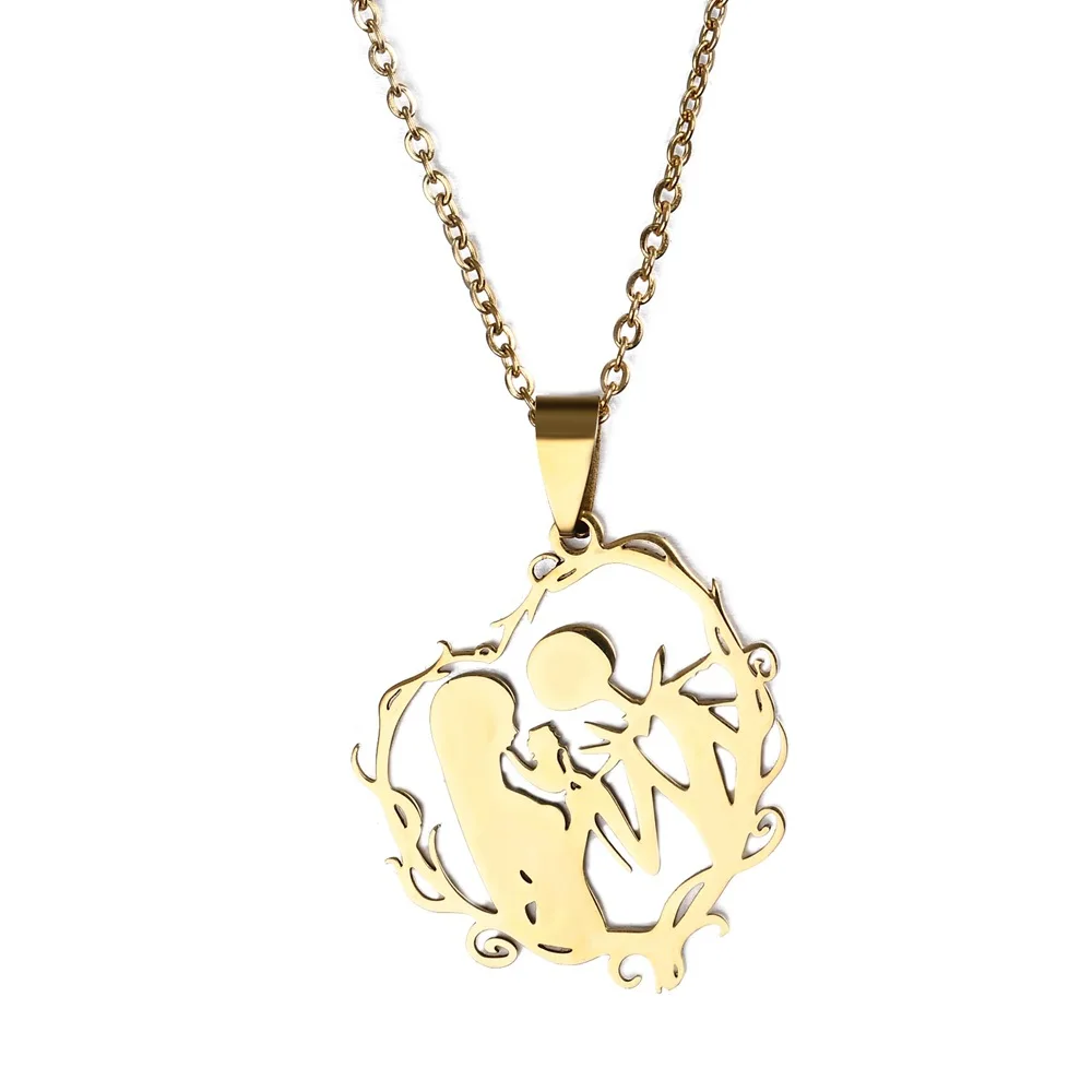 Женское ожерелье с подвеской Джек и Салли, серебряное ожерелье с золотой цепочкой, чокер из нержавеющей стали в стиле панк, модные ювелирные украшения для девушек, 2021