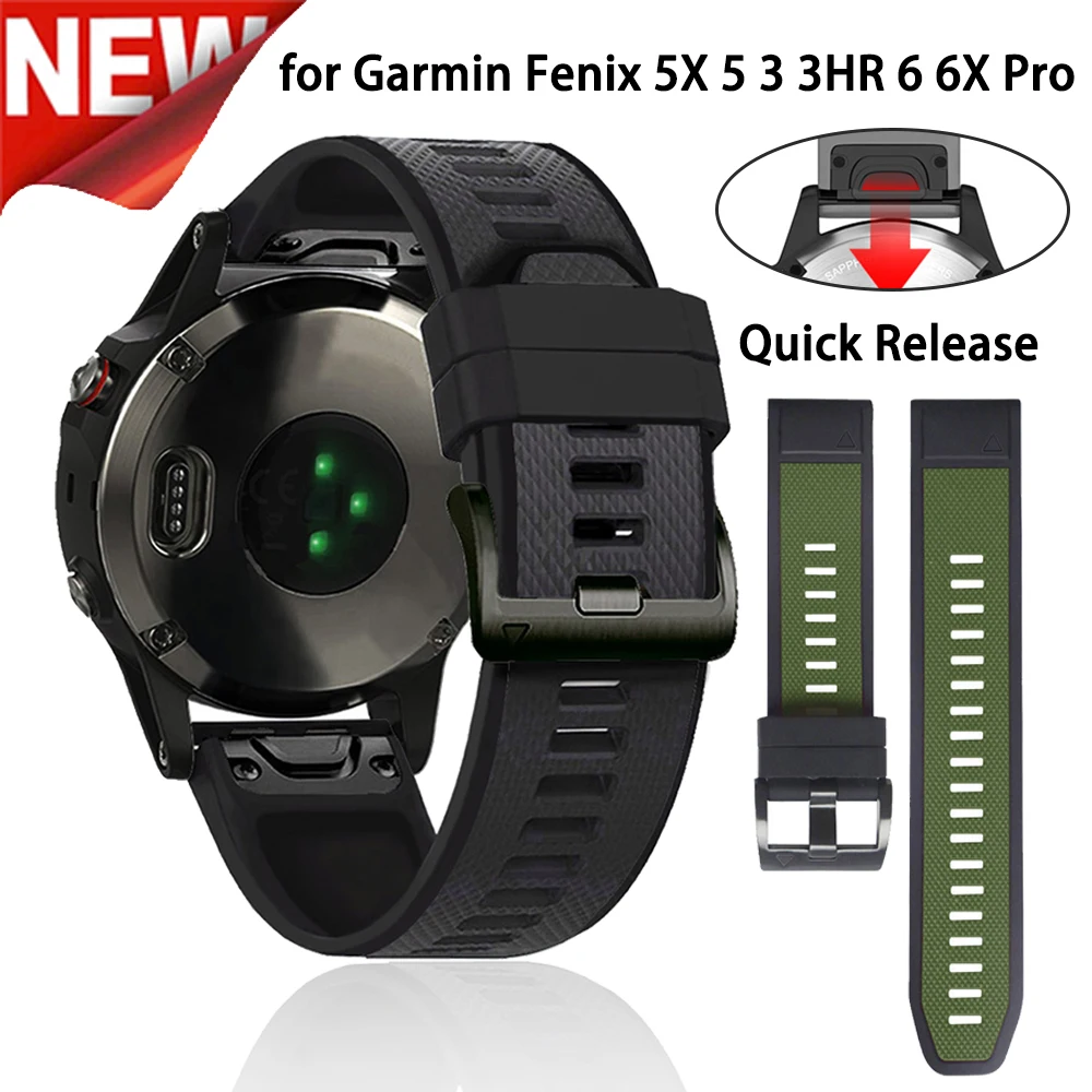 Ремешок для наручных часов Garmin Fenix 6X Pro 5X, 3 HR, силиконовый, легко прилегающий, 26 мм, 22 мм