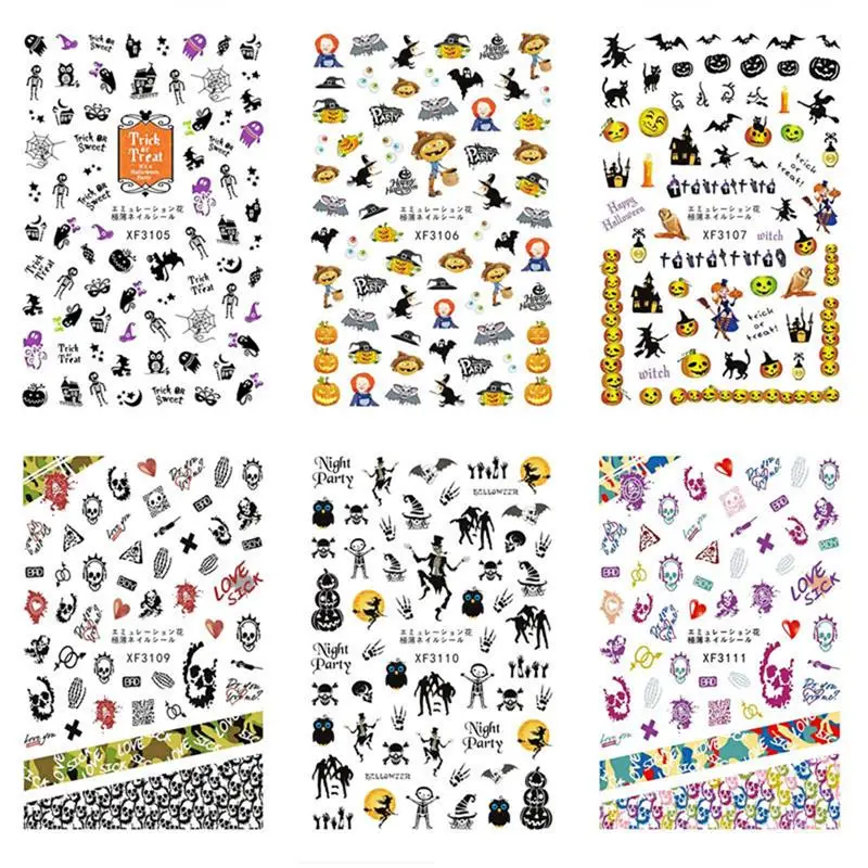 12 шт.компл., наклейки для ногтей на Хэллоуин, наклейки для ногтей с изображением скелета, тыквы, переводные наклейки для ногтей, украшения для ногтей, инструменты для дизайна ногтей