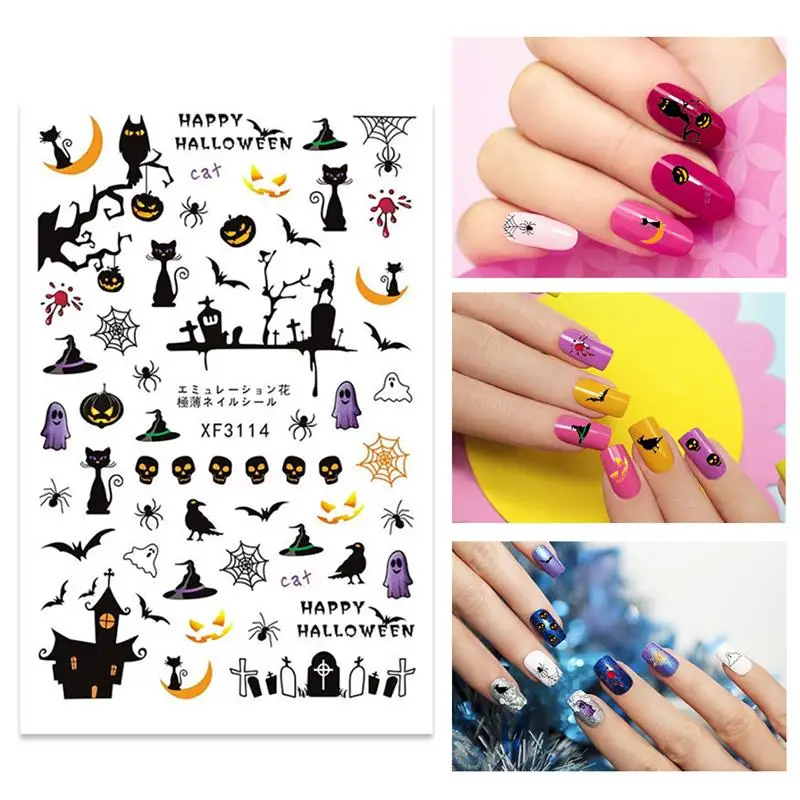 Точка пули: Они легко наносятся на натуральные или искусственные ногти и подходят для ногтей и ногтей. Так мило, вы можете оставаться в течение длительного времени, особенно с дополнительным слоем прозрачного лака для ногтей. Модный и изысканный, он может помочь Нейл-арту. Это идеальный выбор для домашнего и салонного использования. Хэллоуин имеет различные узоры, очень подходит для ногтей DIY. Он используется для взрослых и детей и прост в использовании и разборке.