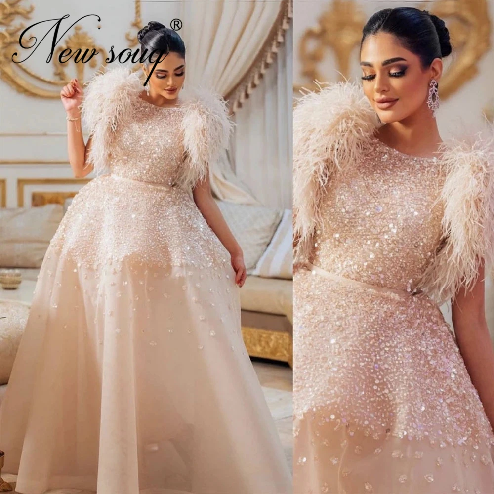Вечерние платья в мусульманском стиле с перьями, платья для выпускного вечера с бисером в стиле Саудовской Аравии, Подиумные наряды трапециевидной формы с красной ковровой дорожкой, 2021