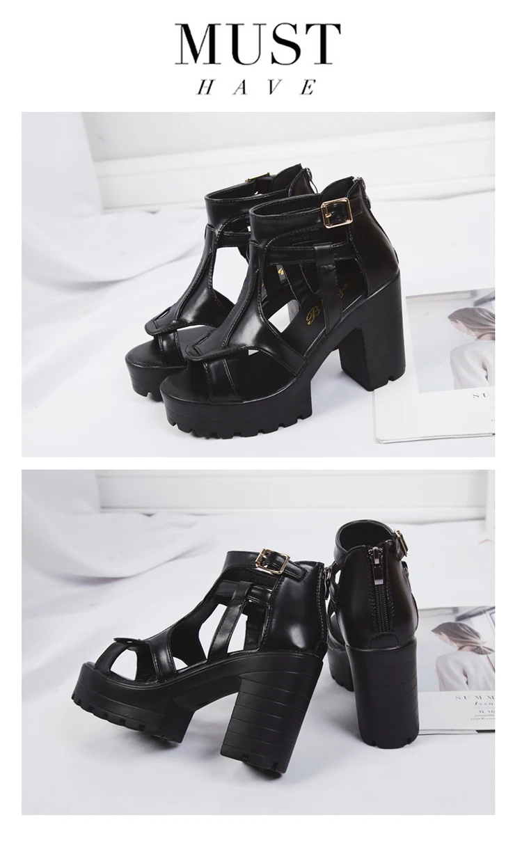 black platform thick heels