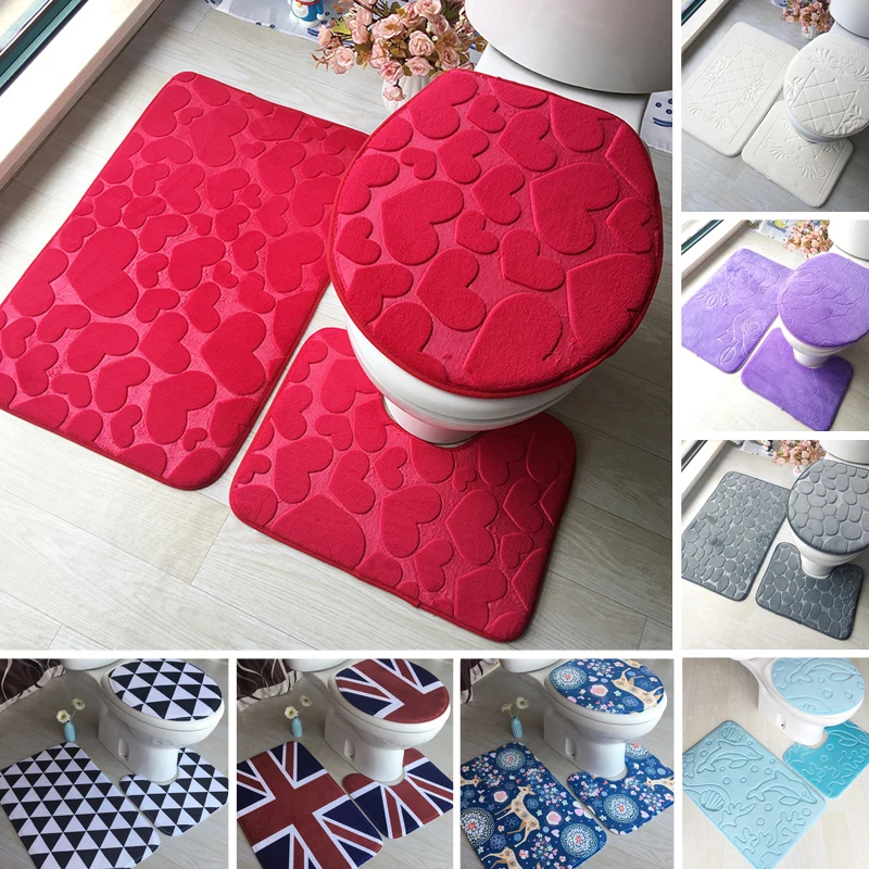 3 шт.компл. Ванная комната коврик набор фланель анти-скольжения Кух...