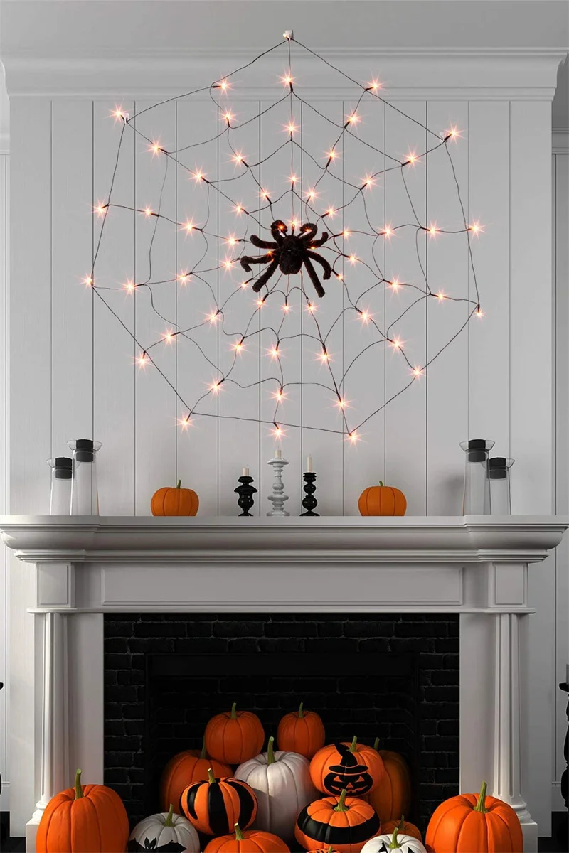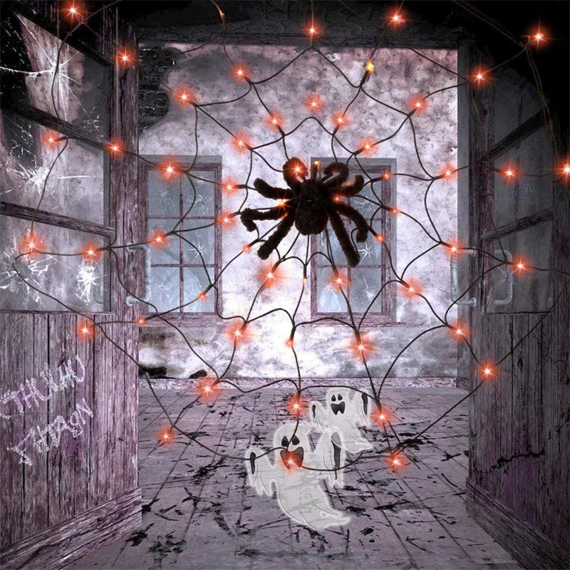 СВЕТОДИОДНАЯ Гирлянда в виде паутины на Хэллоуин, Сказочная гирлянд...
