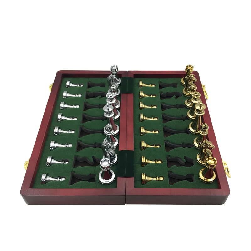 2021 металлические глянцевые золотые и серебряные шахматы, твердые деревянные складные шахматные доски, высококачественные профессиональные шахматные игры CN