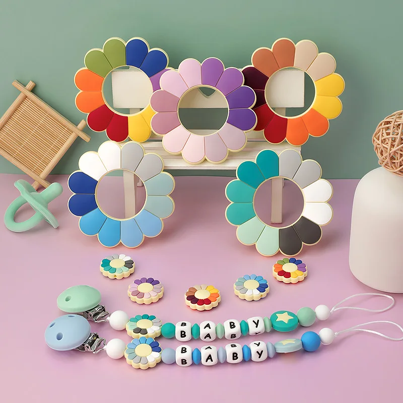 Силиконовый Прорезыватель для зубов TYRY.HU с цветами и мини-бусинами, Детская цепочка для соски, силиконовые бусины, молярные игрушки пищевого класса, аксессуары сделай сам без бисфенола
