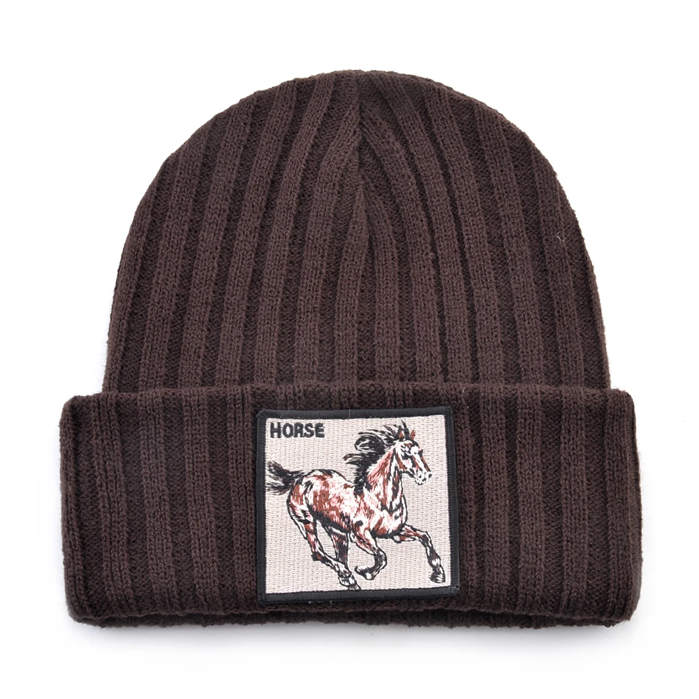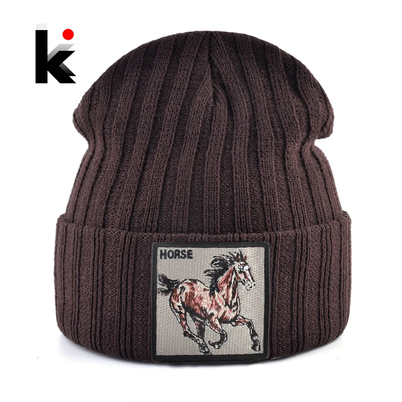 Новые шапки бини с вышитой лошадью, вязаные однотонные головные уборы для мужчин и женщин, уличная Кепка для мальчиков