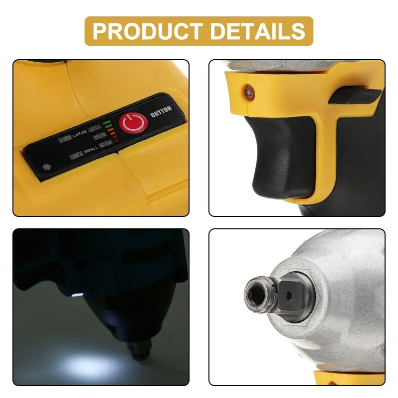 Особенности: -800N.M высокий крутящий момент, плавный Переключатель изменения скорости.-Мощный электрический гаечный ключ, многоцелевой, супер мощный.-Вал из вольфрамовой стали, высокая твердость и износостойкость.-Подходит для строительных площадок, технического обслуживания, деревообработки и т. Д.-Бесщеточный двигатель не генерирует искры, когда он работает, и двигатель не изнашивается.-Светодиодный светильник.