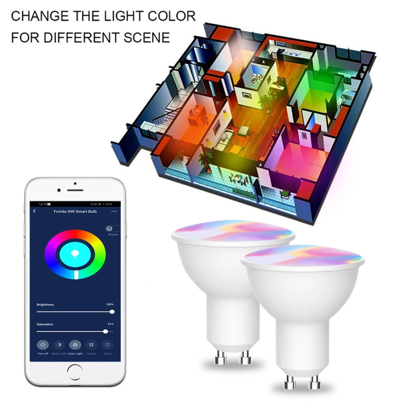 Умсветильник лампа GU5.3GU10 с Wi-Fi, 6 Вт, RGB + CW