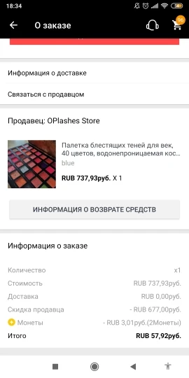 продавец отменил заказ и вернул деньги..