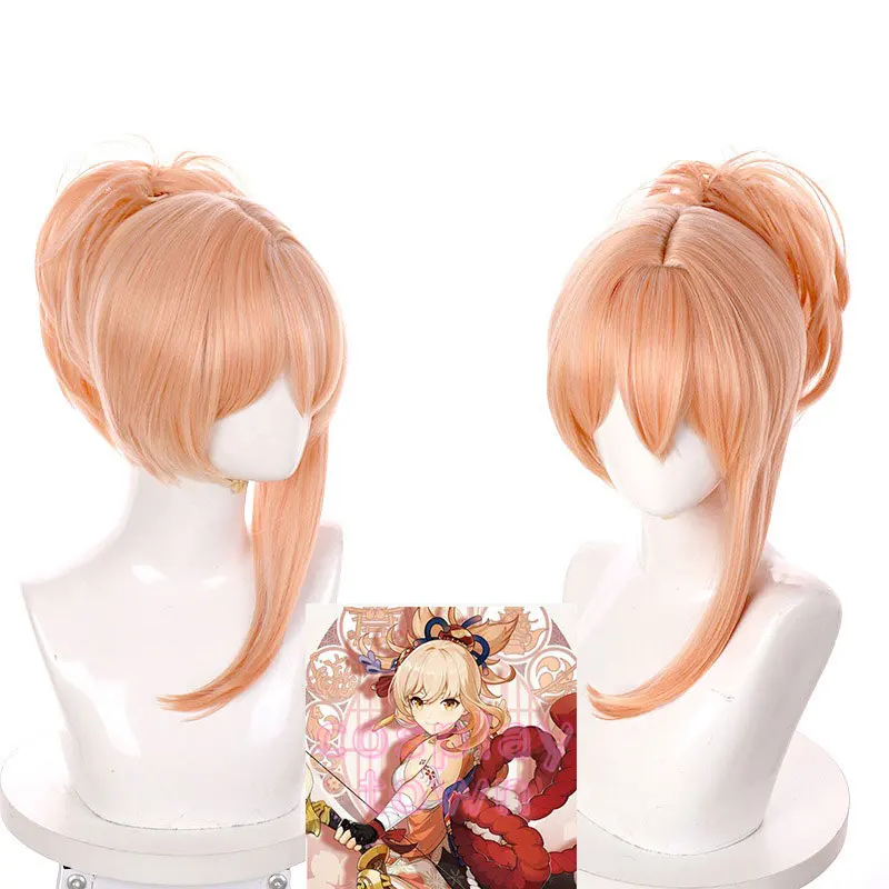 Парик для косплея Yoimiya, Genshin Impact, 50 см, оранжевый, с хвостиком, косплей, парик, игра, костюм Amine, ролевые игры, парик Yoimiya, парик для Хэллоуина