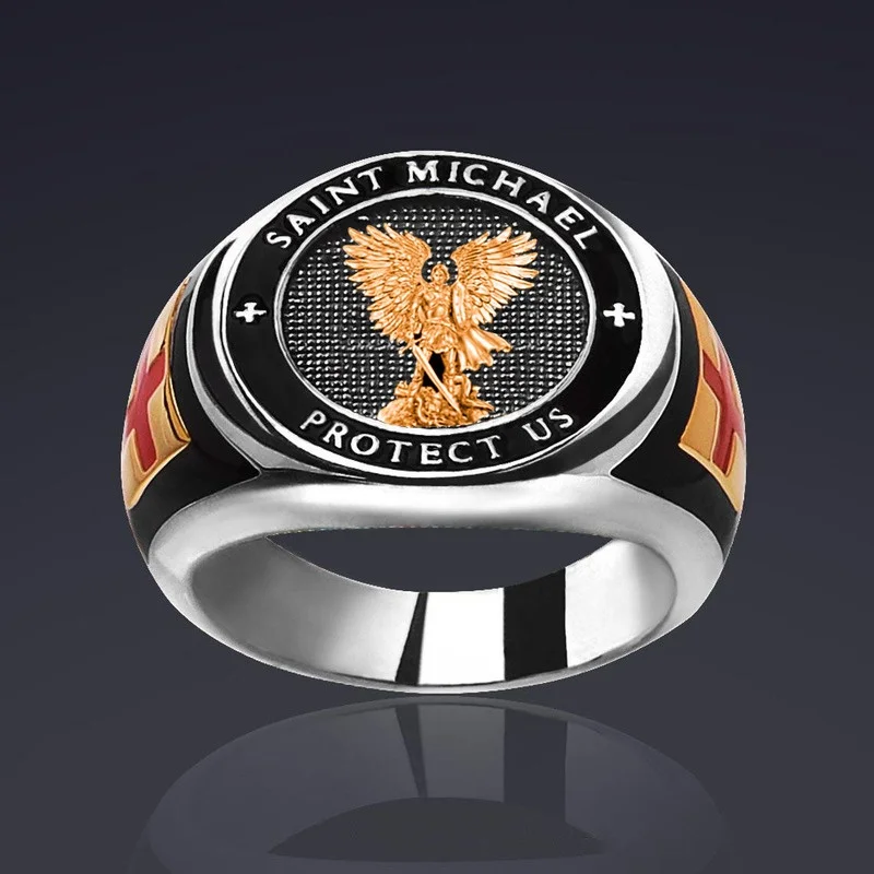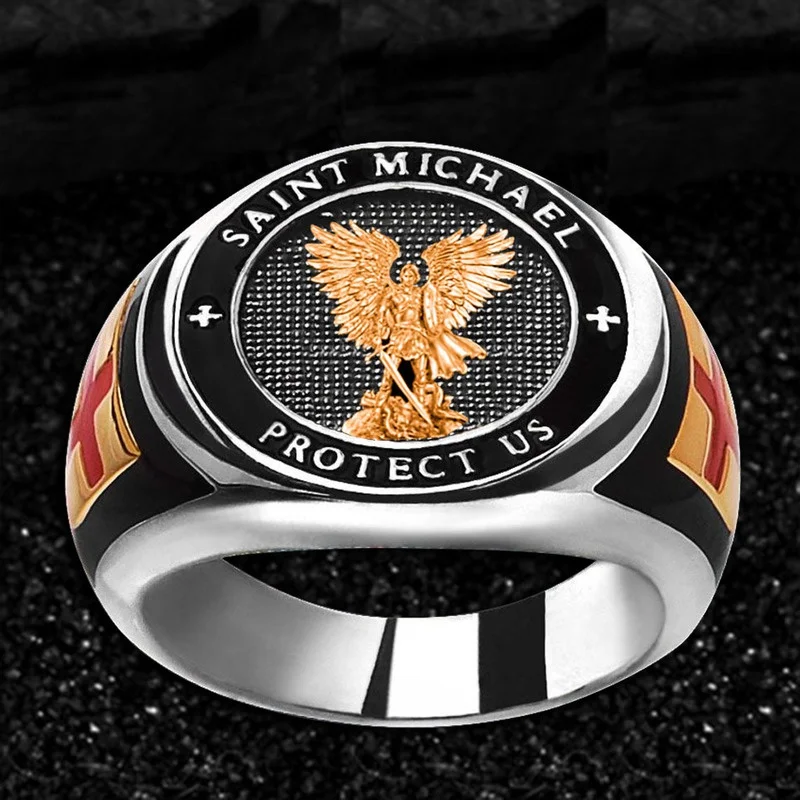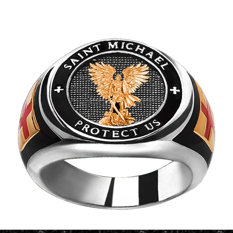 кольцо мужское перстень мужской винтажные кольца Мужское кольцо с изображением дракона, воина, святого Михаила, Красного Креста, религиозное кольцо, христианское молитвенное кольцо, мужское Ювелирное Украшение