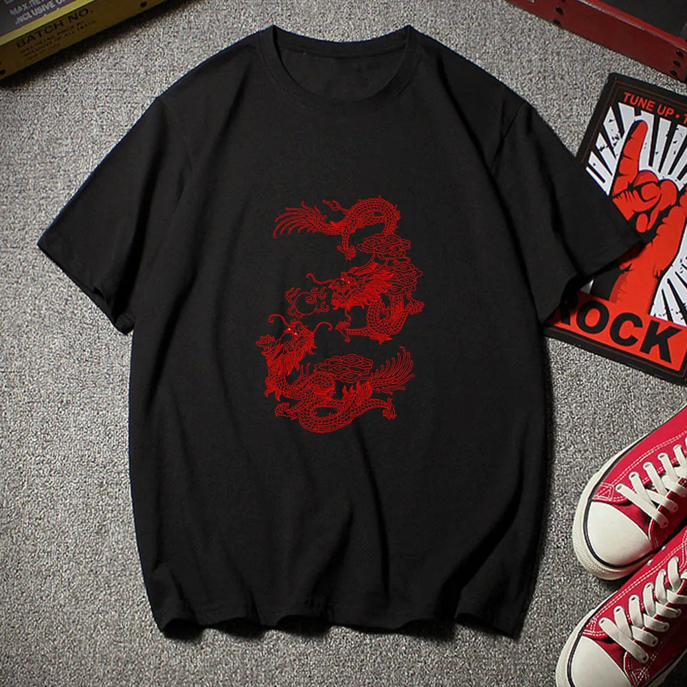 Женская футболка в стиле Харадзюку, летняя свободная футболка с коротким рукавом и принтом китайского дракона, в готическом стиле