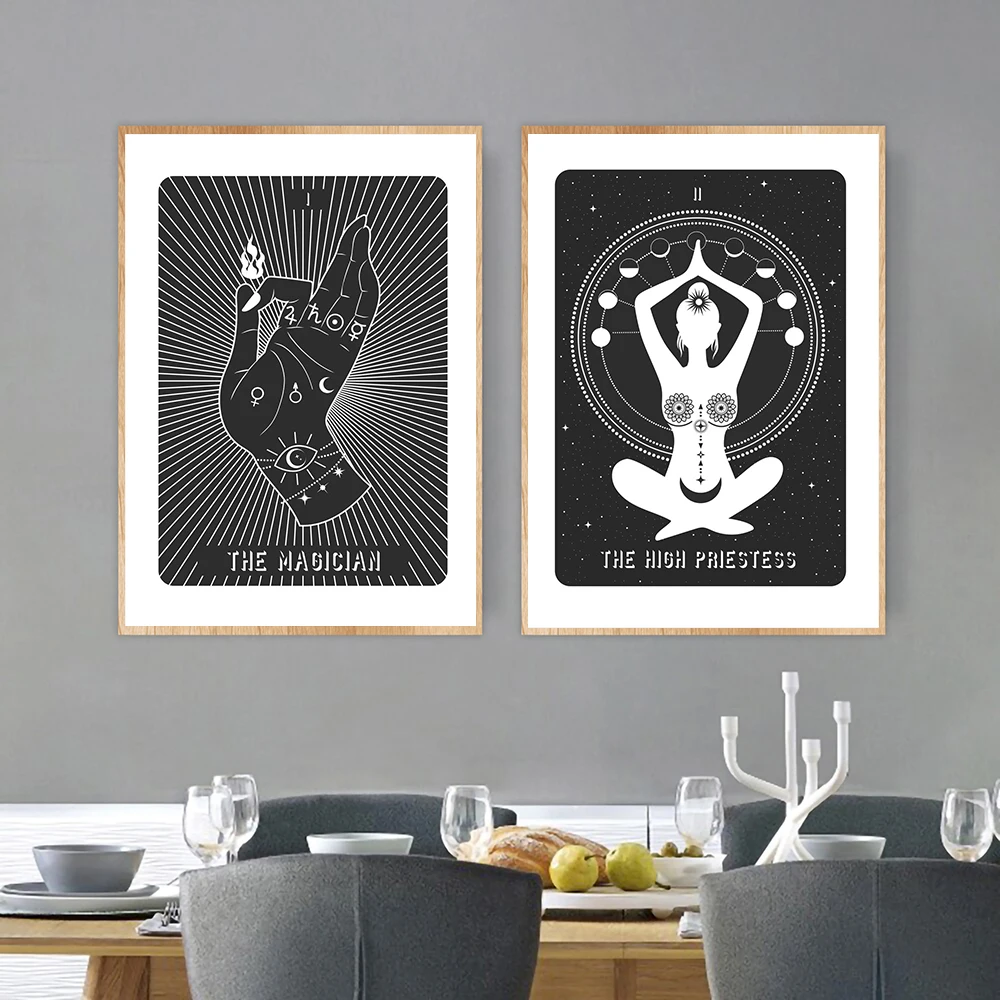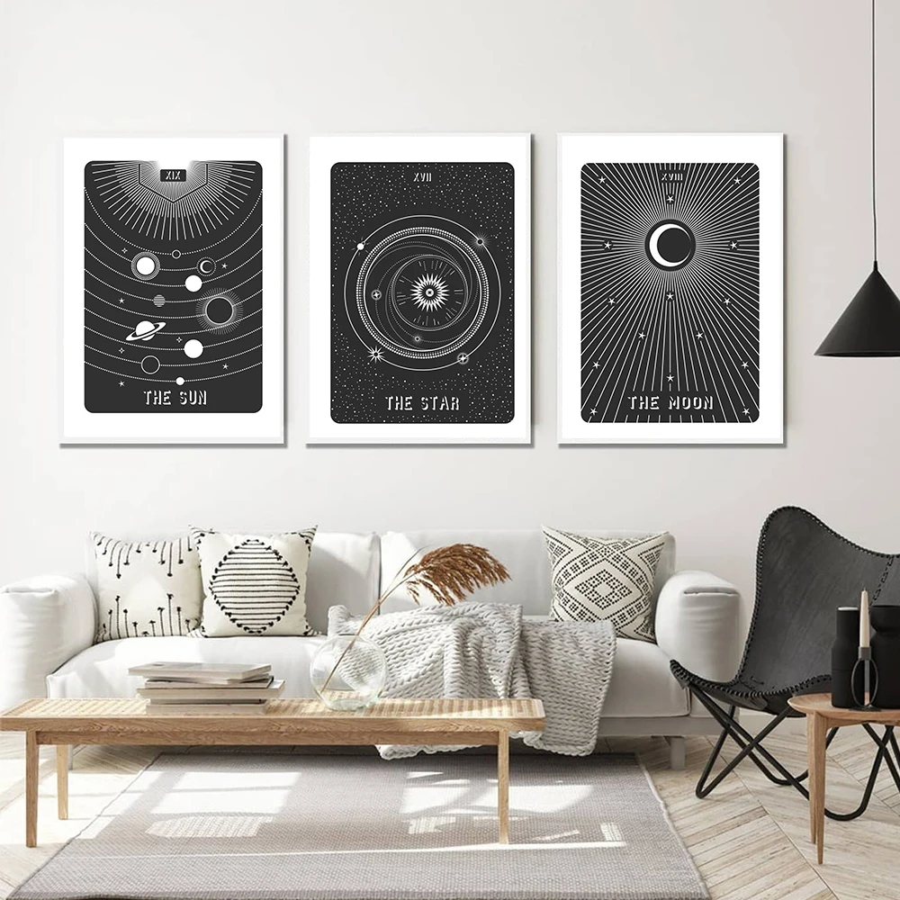 Настенная картина для влюбленных йоги, рисунок на холсте с изображением солнца, Луны, звезд, принтов, постеры и принты для гостиной, домашний декор, черный и белый цвета