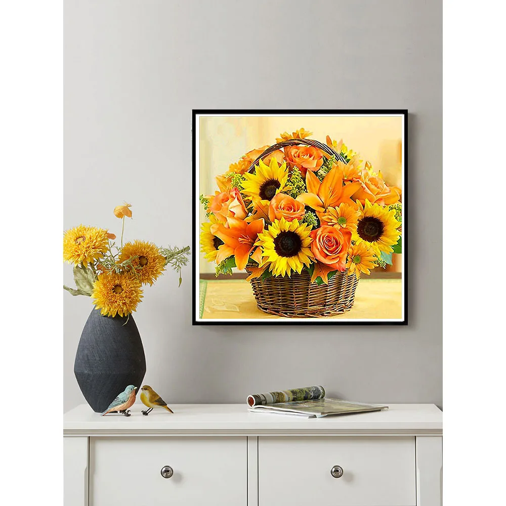 Алмазная картина подсолнухи, полностью круглая 5D Настенная Наклейк...